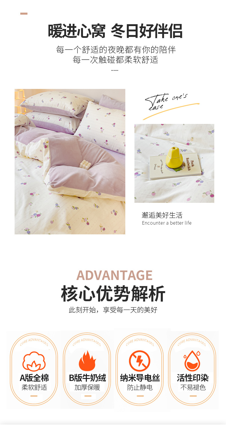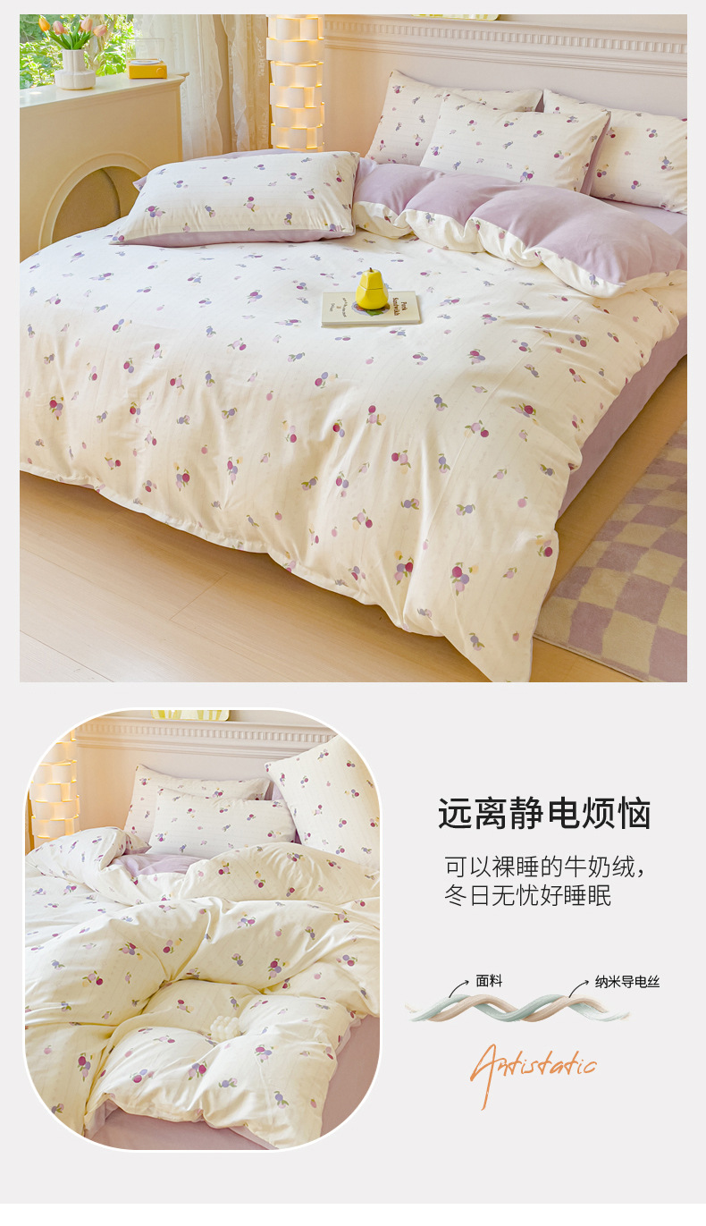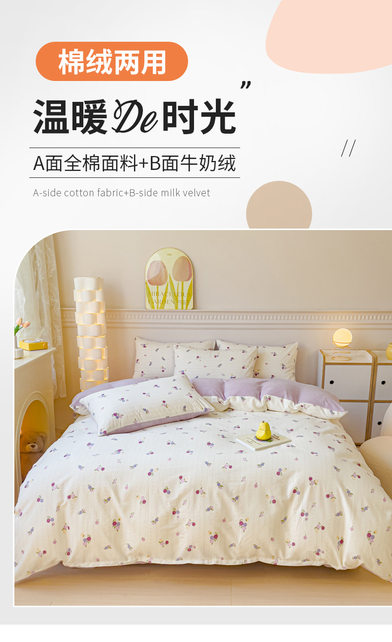 Juego de cuatro piezas de terciopelo de leche de algodón puro 2023 nuevo otoño e invierno más funda de edredón de sábana de terciopelo de coral juego de tres piezas