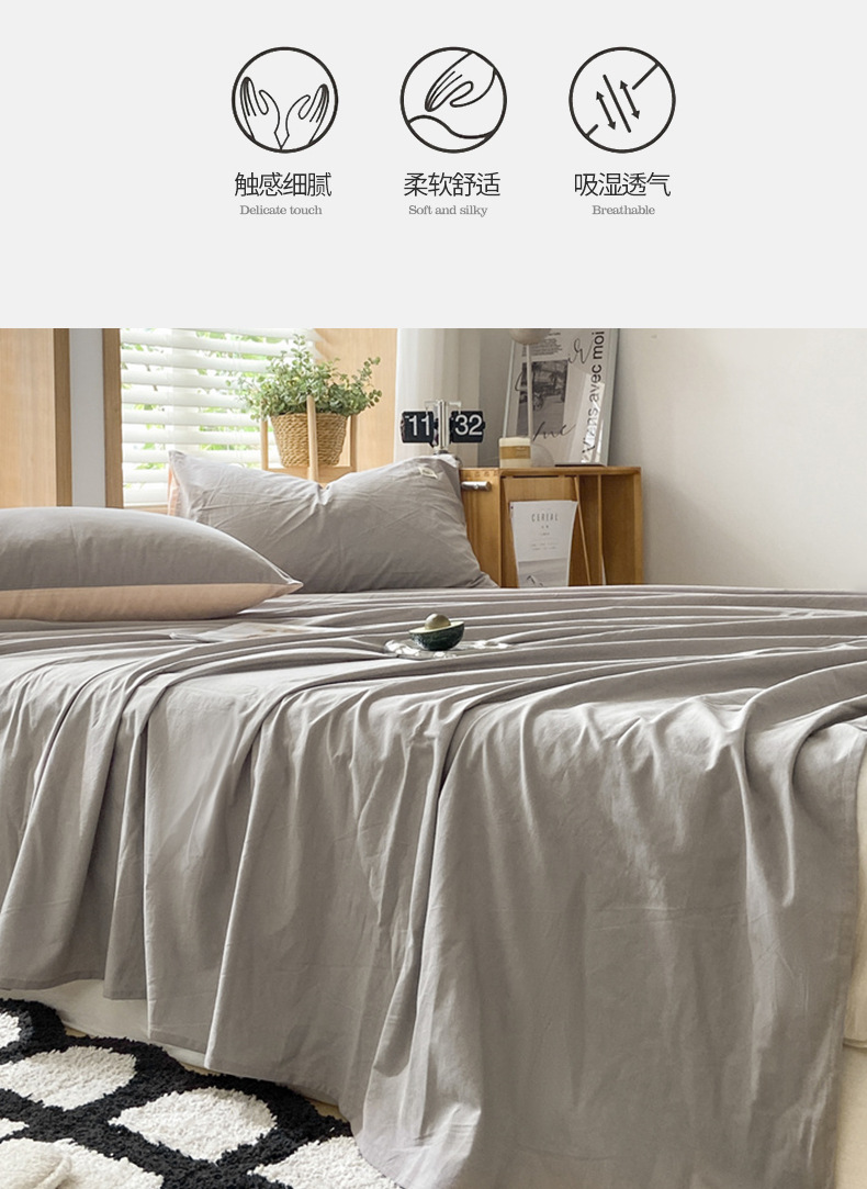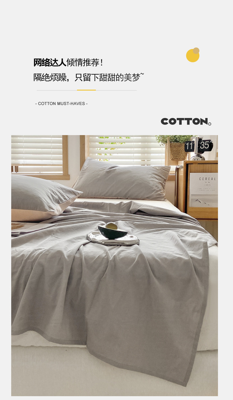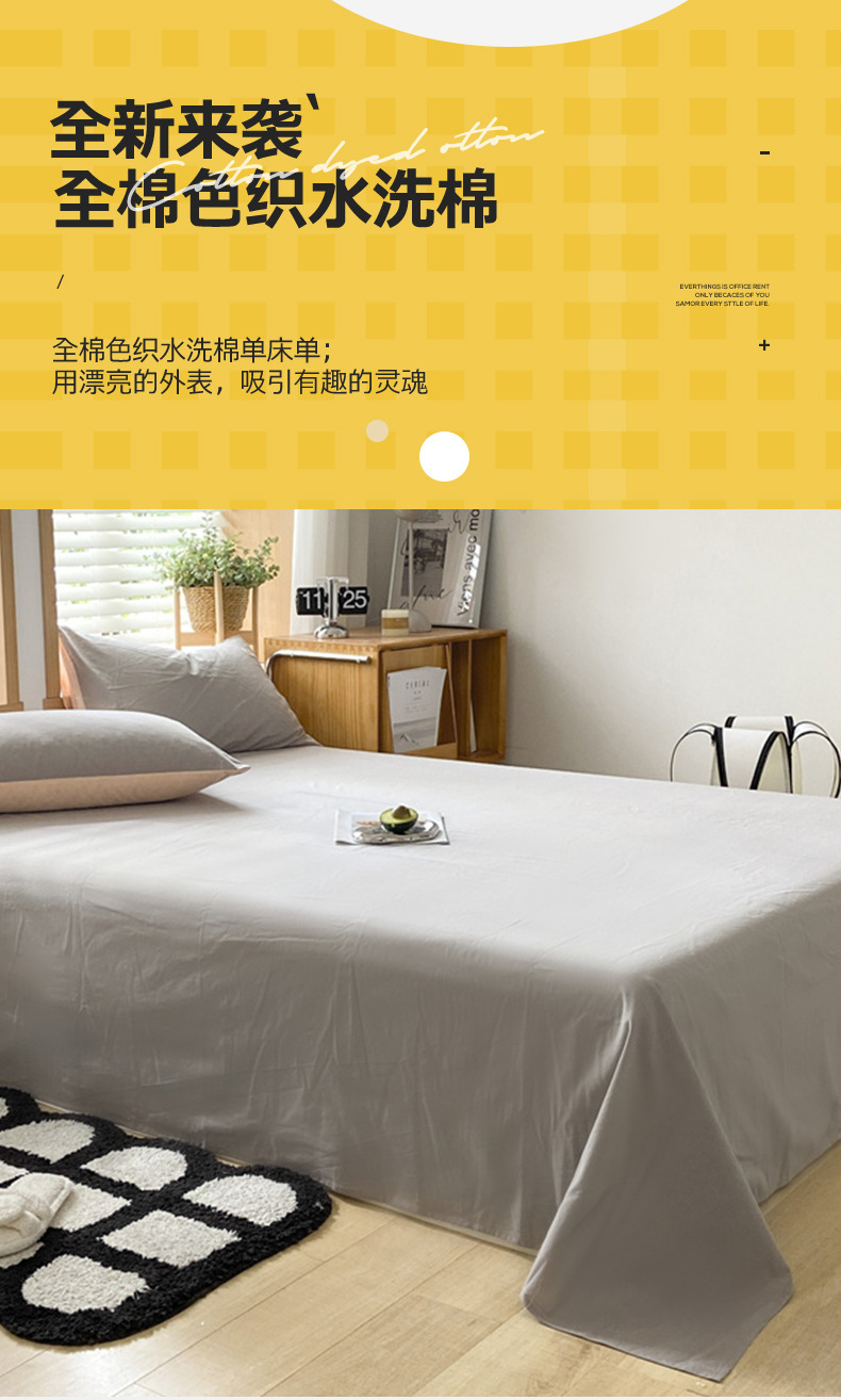 Sábana de algodón lavado de algodón grueso pieza individual 100 algodón dormitorio de estudiantes cama individual funda de almohada de tres piezas 2