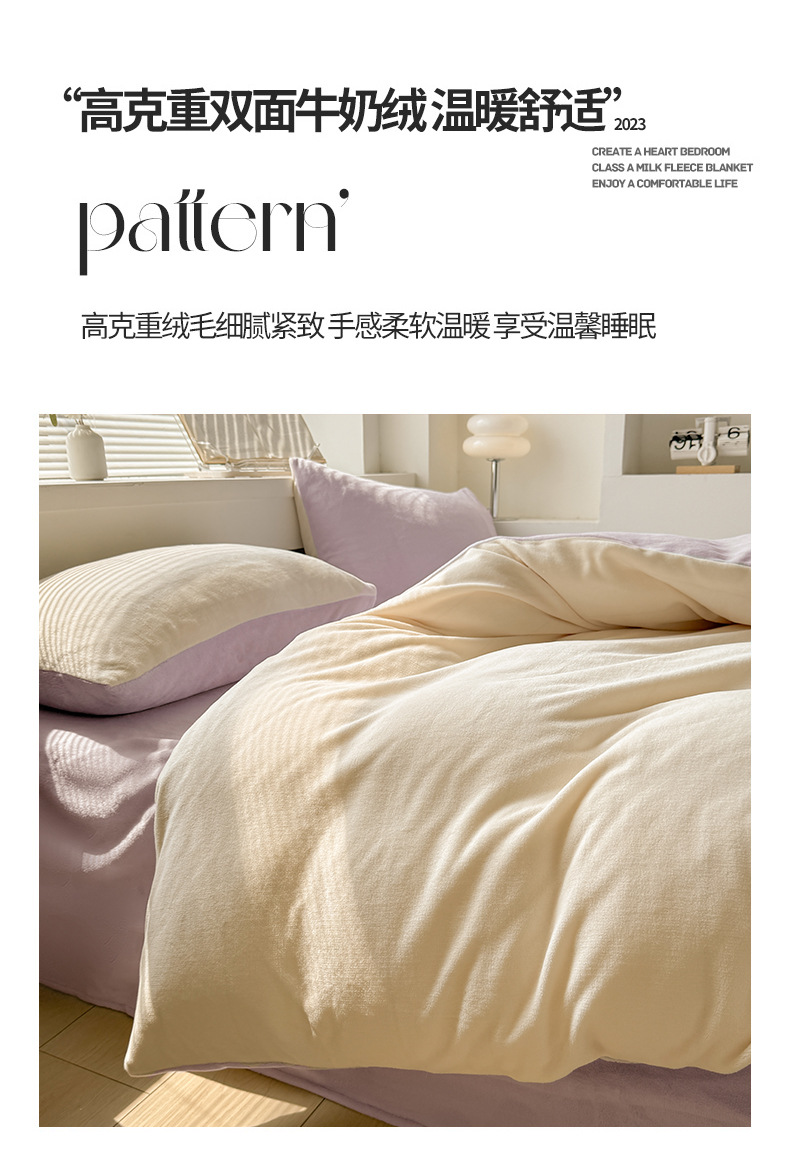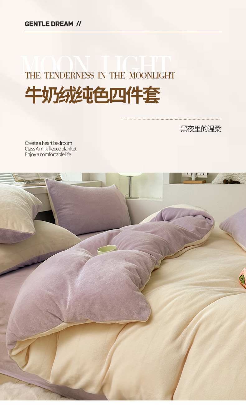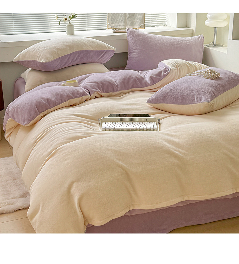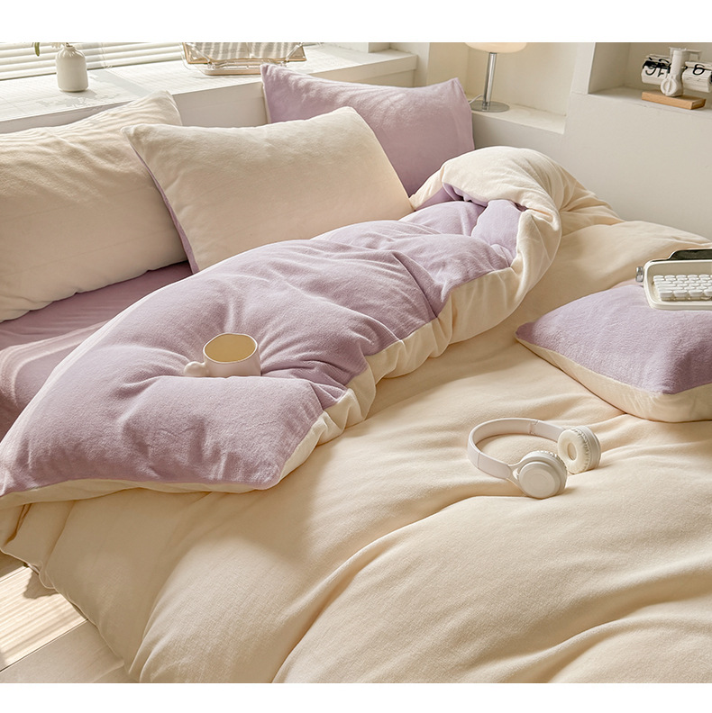 Velvet de leche de color puro 2025 nueva cama de otoño e invierno de cuatro piezas con brida, sábana de lana de coral, ropa de cama cubierta de edredón