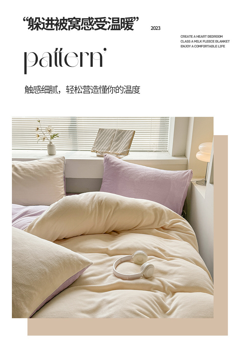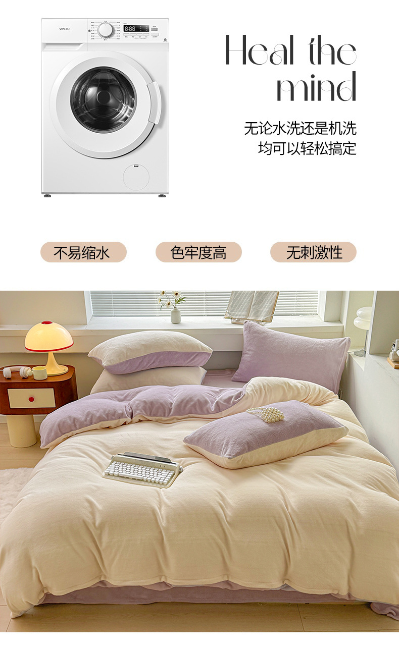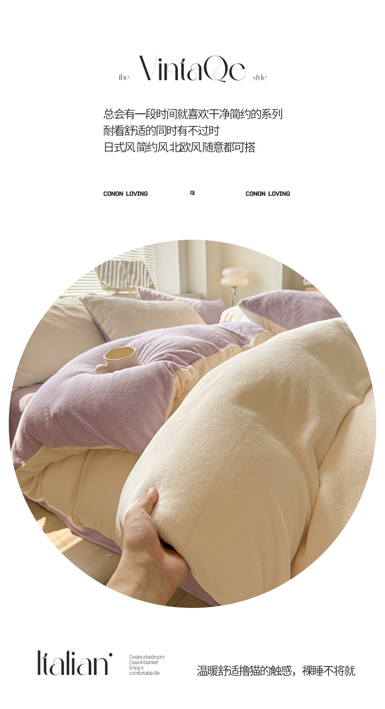 Velvet de leche de color puro 2025 nueva cama de otoño e invierno de cuatro piezas con brida, sábana de lana de coral, ropa de cama cubierta de edredón