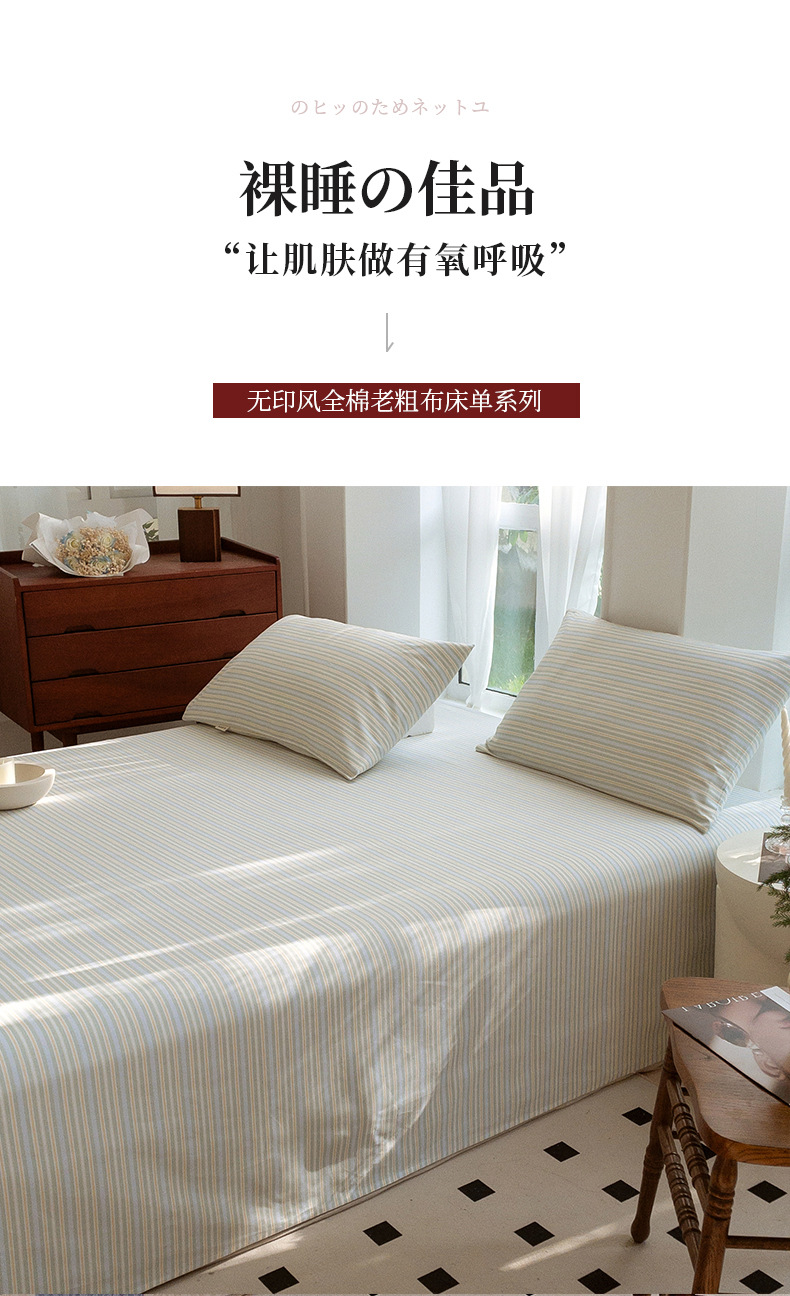 Sábanas de tela gruesa vieja de una sola pieza de algodón puro 100 colchones de lino de lino de algodón, sábana de verano, juego de tres piezas, dormitorio individual