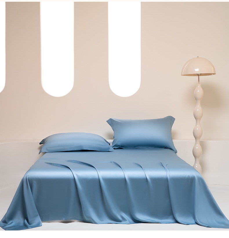 Sábana de seda de 100 días de verano, una sola pieza, color sólido, sensación fresca, seda de hielo, dormitorio, cama desnuda para dos personas, funda de almohada, juego de tres piezas