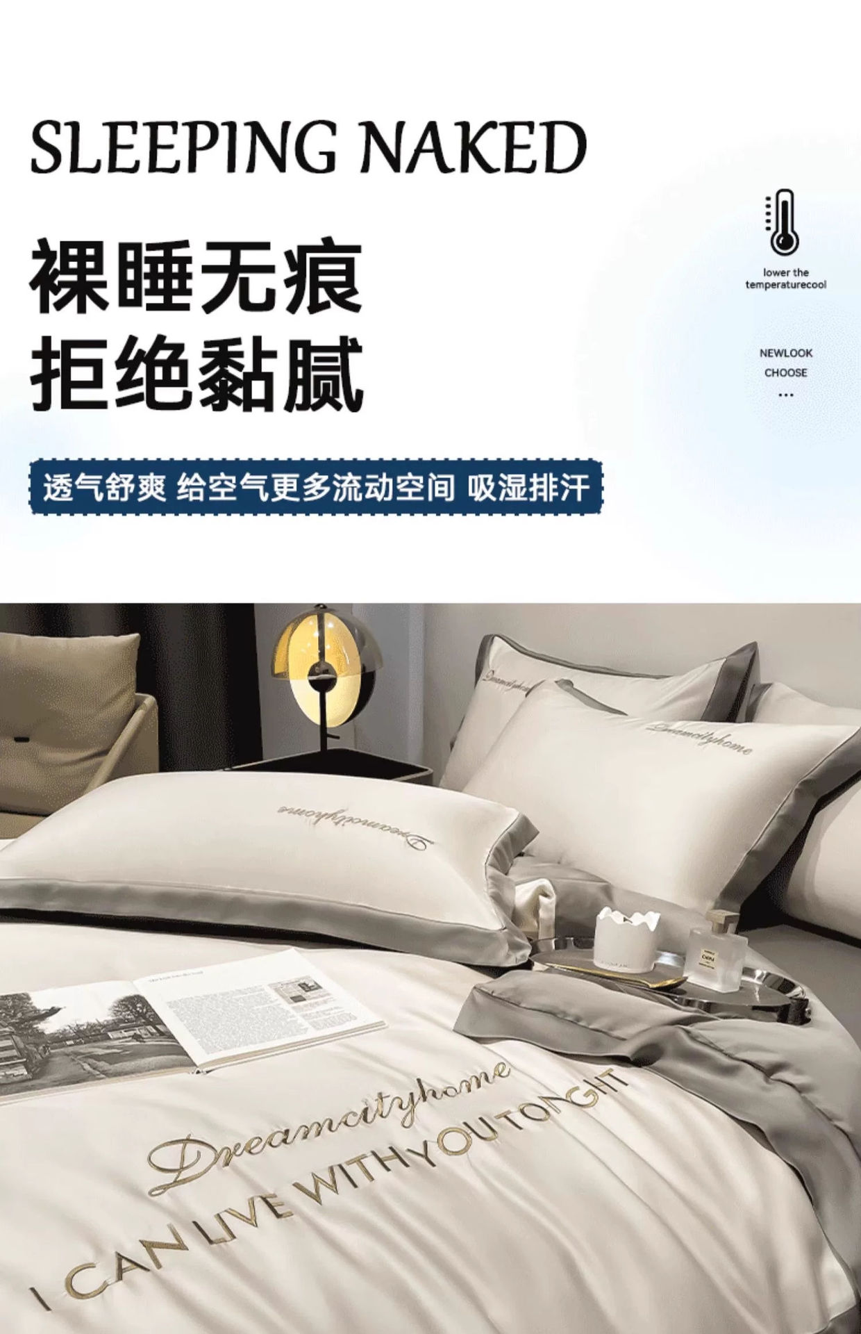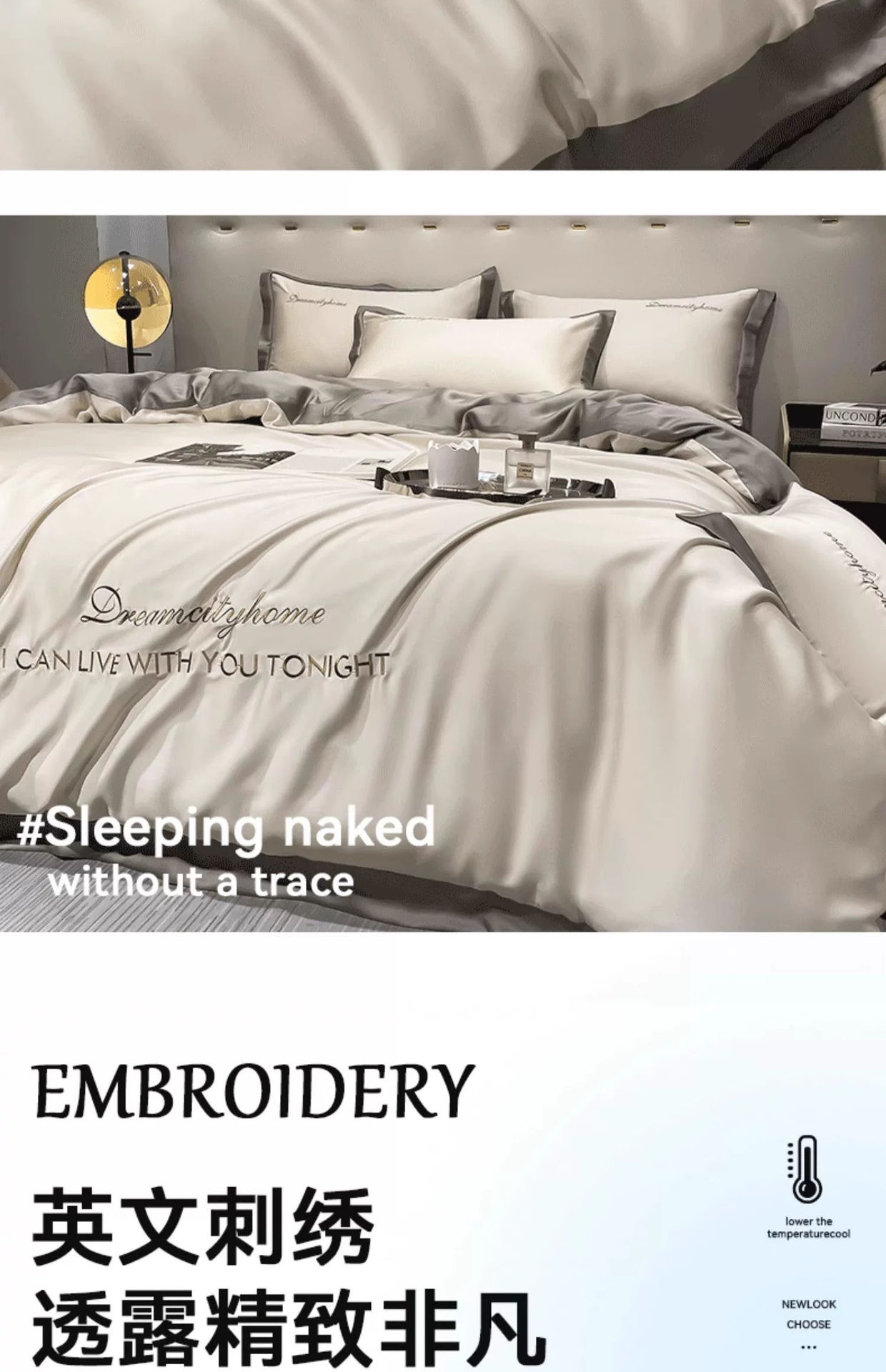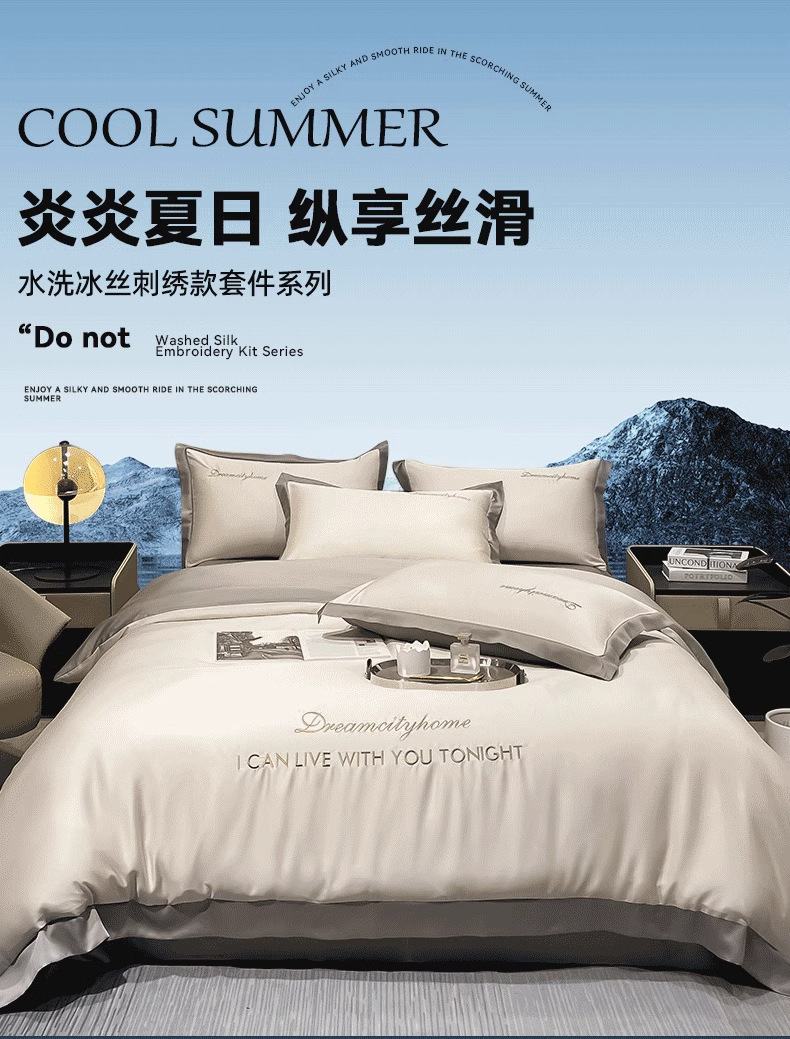 Juego de cuatro piezas de seda de hielo de alta calidad, cama de seda de lujo ligera, funda de edredón para dormir desnuda, sábana de tres piezas de primavera y verano