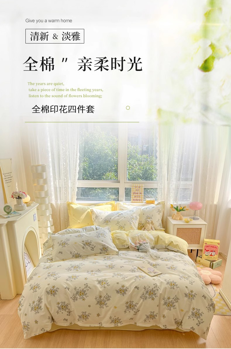 Traje de cuatro piezas estilo ins algodón puro 2023 nuevo estilo 100 funda de edredón sábana dormitorio de estudiantes ropa de cama