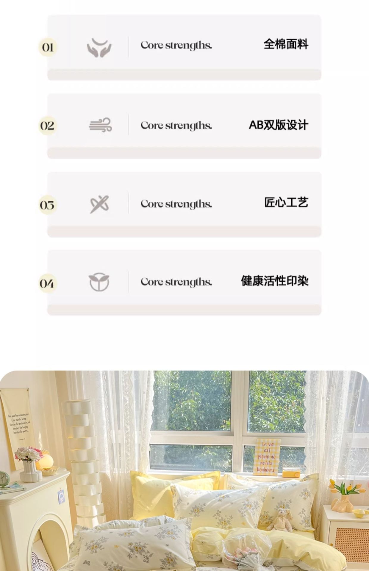 | Especificaciones de tamaño | Cama de 0,9 m [Juego de sábanas de tres piezas] Adecuado para edredón de 150*200cm,Cama de 1,2 m [Juego de sábanas de tres piezas] Adecuado para edredón de 150*200cm,Cama de 1,5 m [Juego de sábanas de cuatro piezas] Adecuado para edredón de 200*230cm,Cama de 1,8 m [Juego de sábanas de cuatro piezas] Adecuado para edredón de 200*230cm,Cama de 2.0m [Juego de sábanas de cuatro piezas] Adecuado para edredón de 220*240cm,Cama de 1,5 m [juego de cuatro piezas de sábana] adecuada para edredón de 200*230cm,Cama de 1,8 m [juego de cuatro piezas de sábana] adecuado para edredón de 200*230cm |