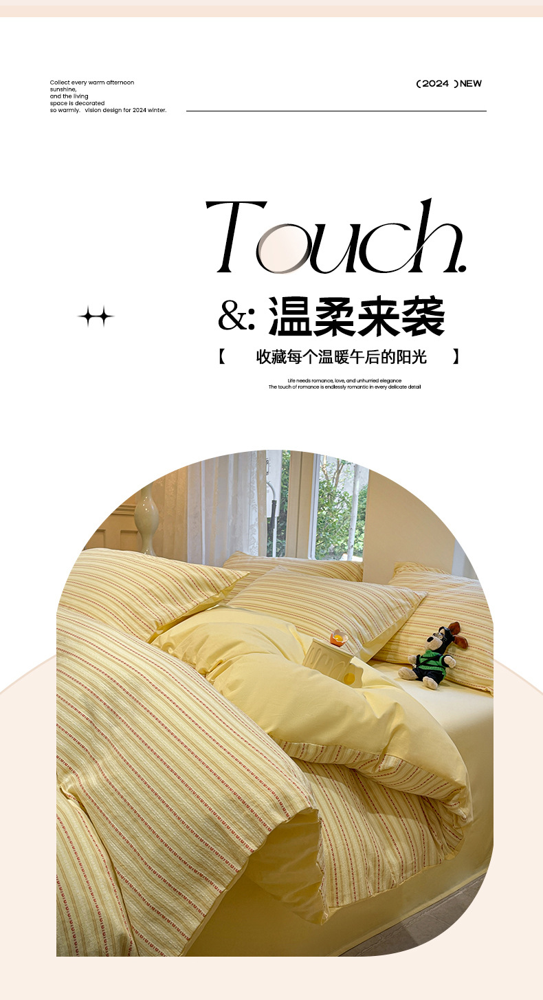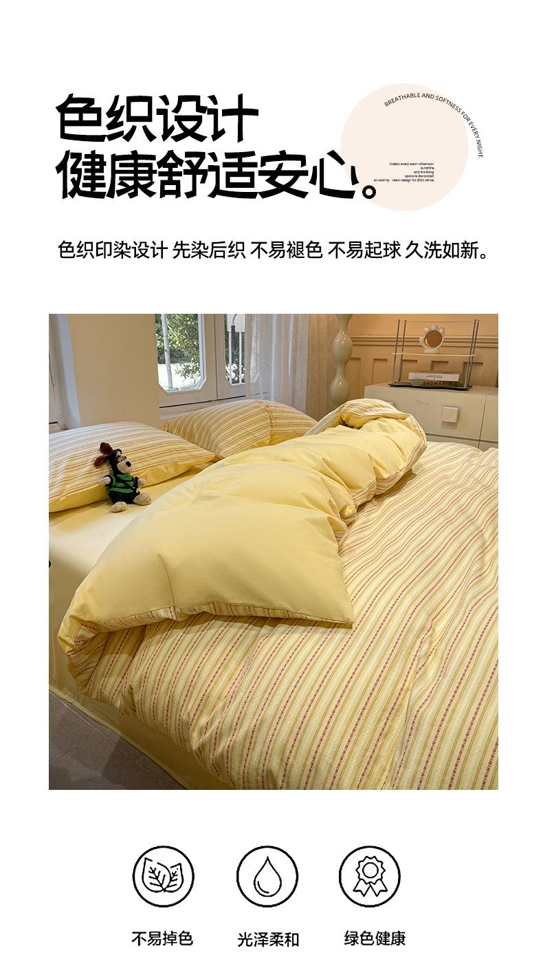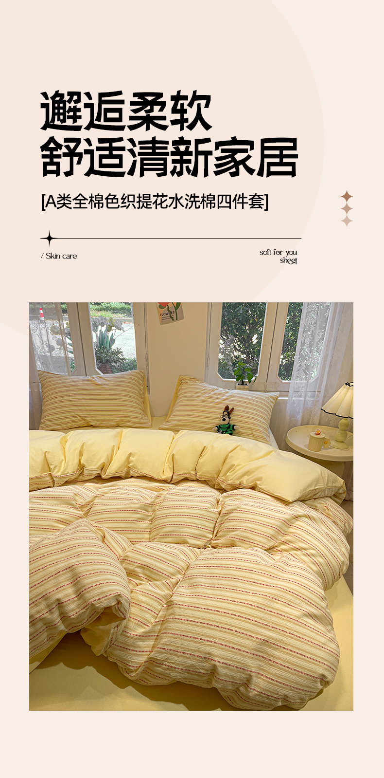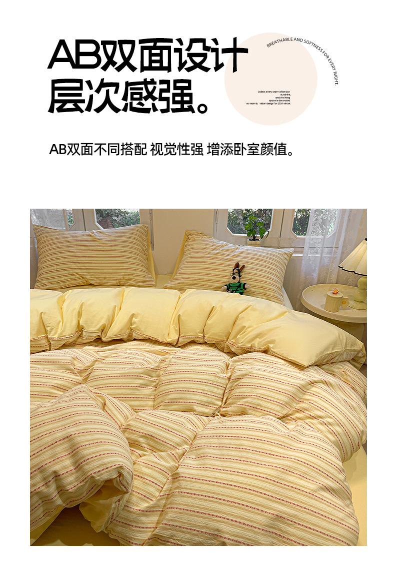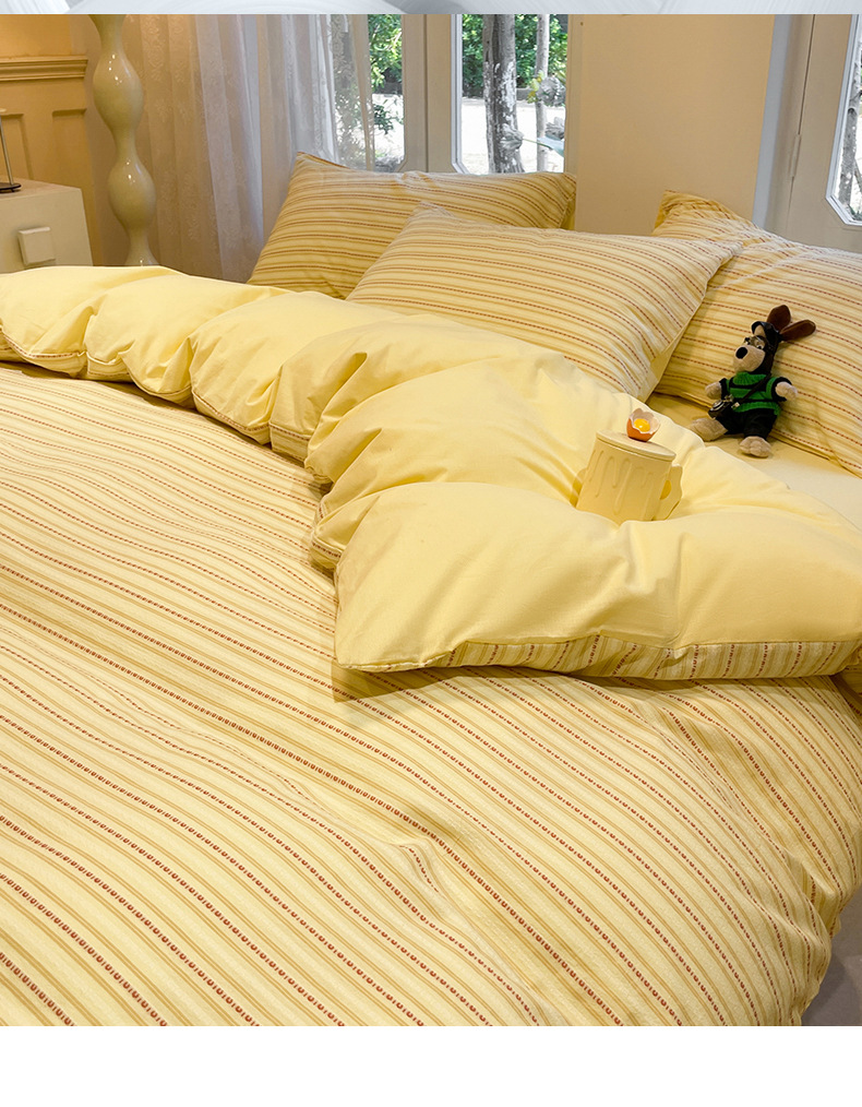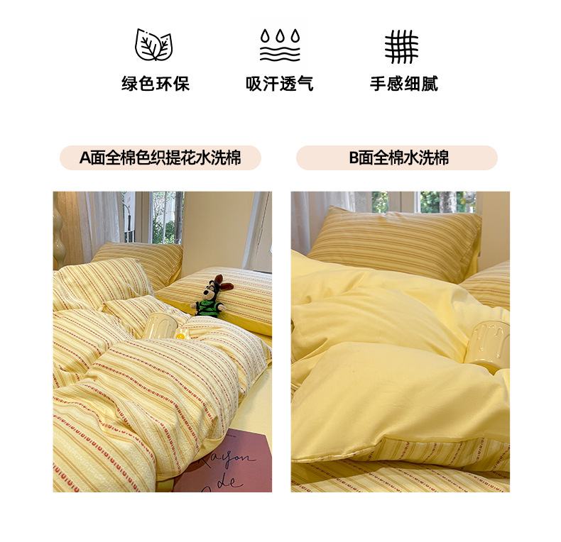Juego de Sábanas de Cuatro Piezas de Algodón Lavado 2026A, Estilo Nuevo, Sábana Ajustable, Funda de Edredón, Ropa de Cama para Dormitorio