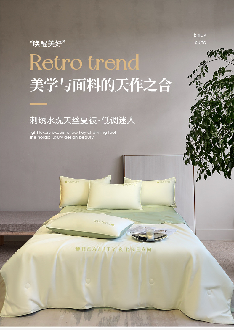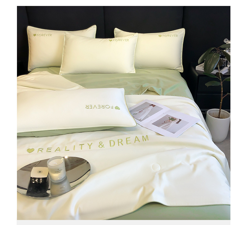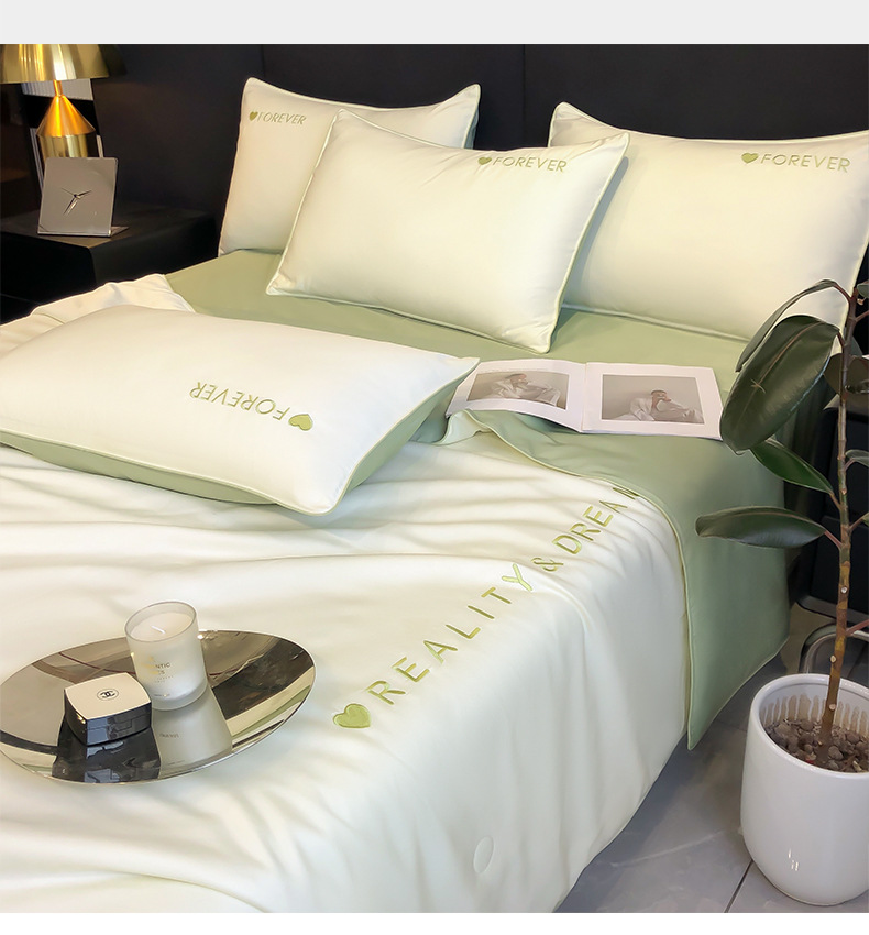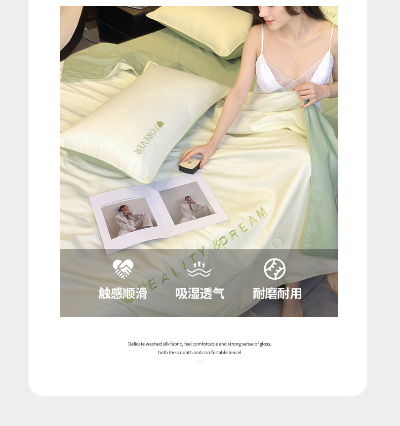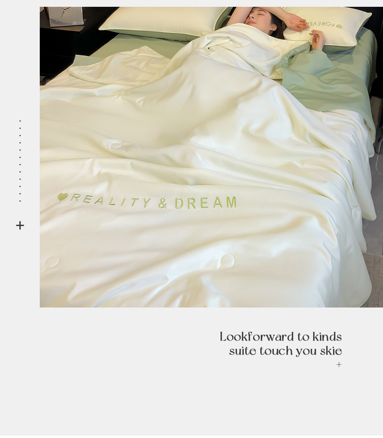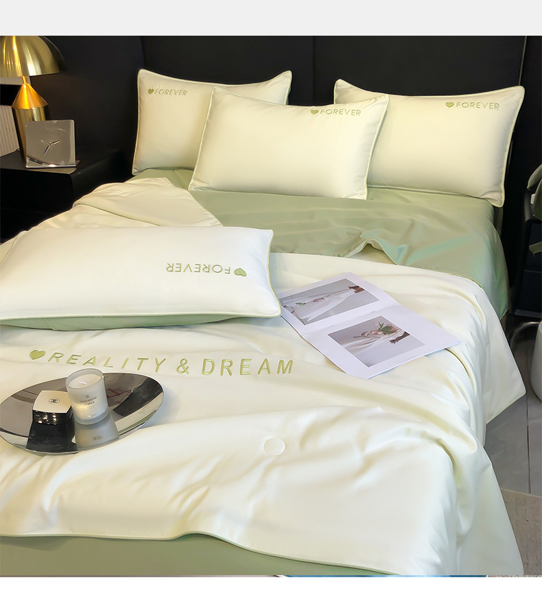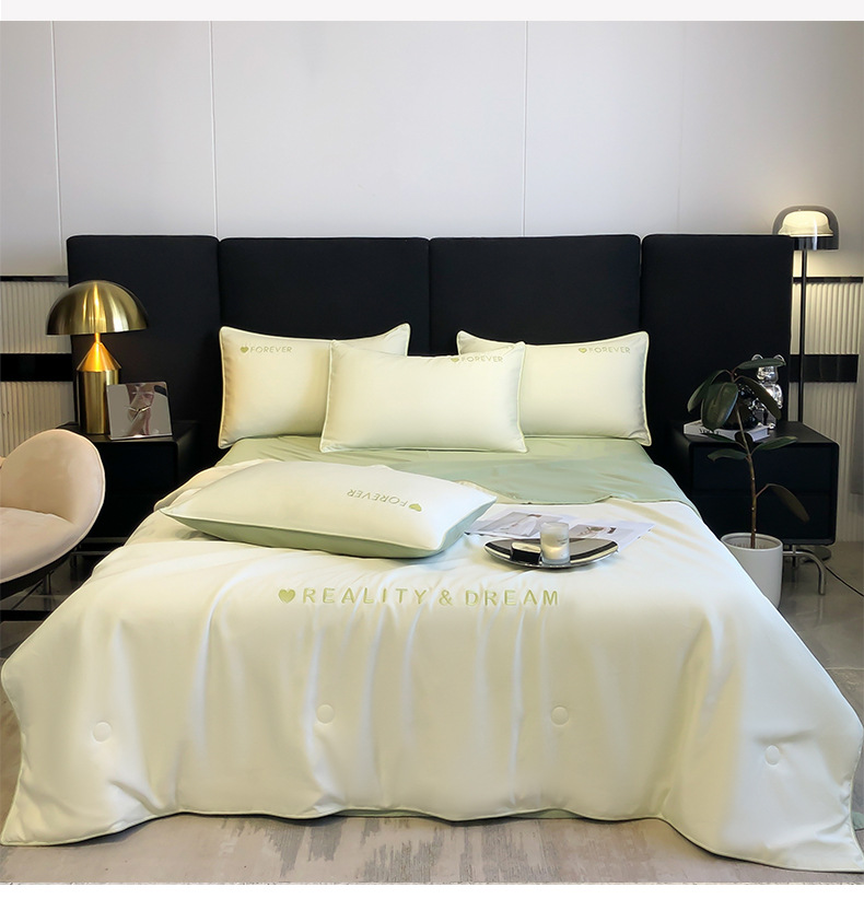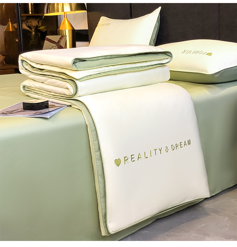 Edredón fresco de verano lavado de cuatro piezas Edredón de verano Edredón de aire acondicionado Edredón fino de seda de hielo de verano El núcleo de la colcha se puede lavar a máquina verano