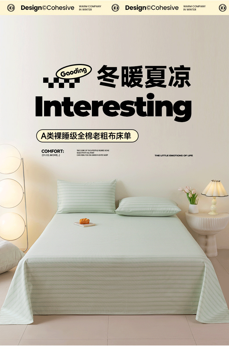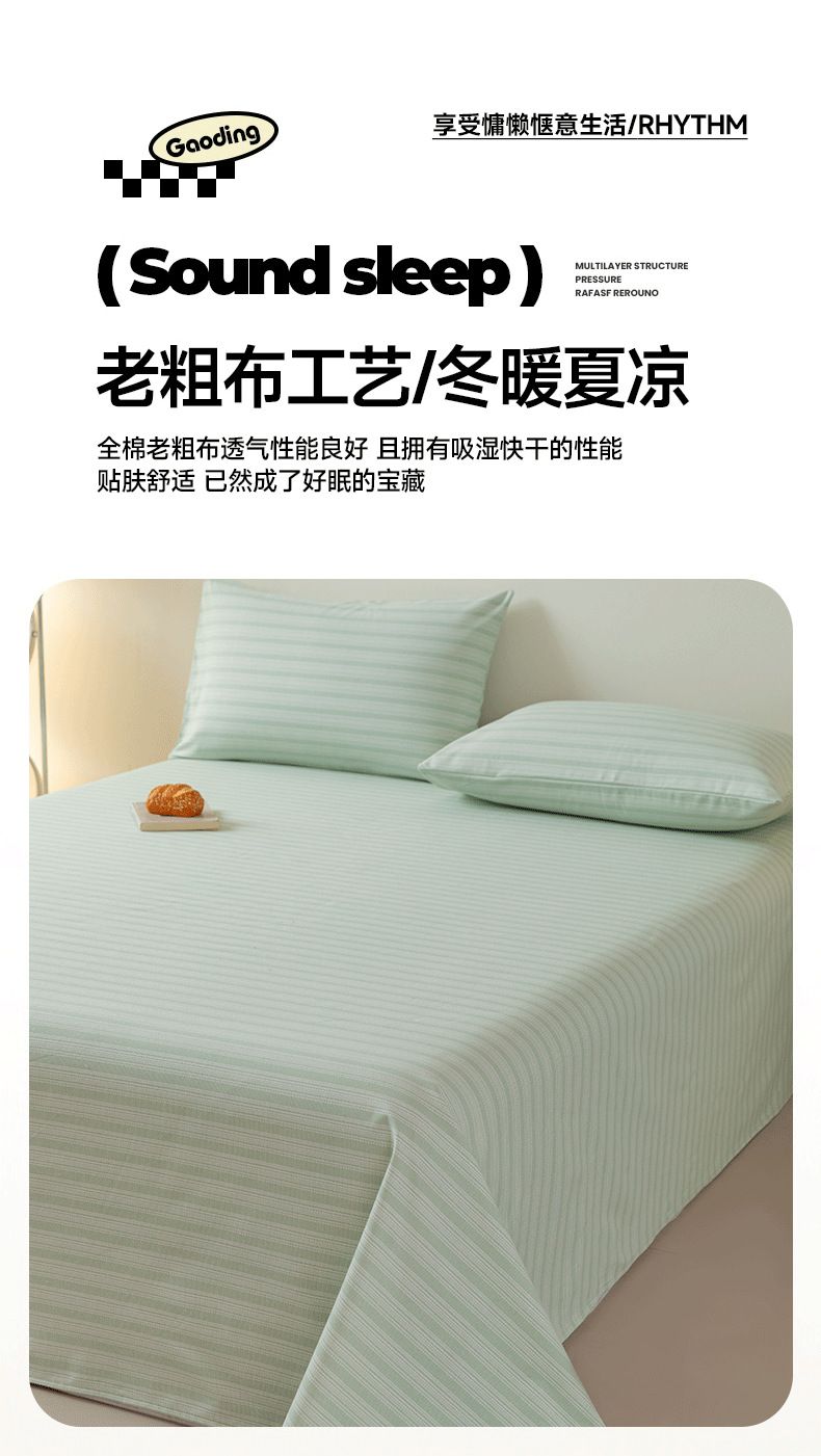 2025 nueva sábana de tela gruesa vieja de algodón puro pieza individual 100 funda de almohada individual de lino de algodón cama individual dormitorio de tres piezas 2