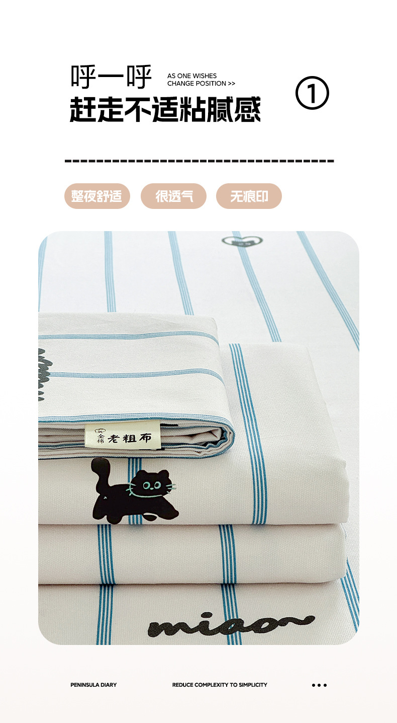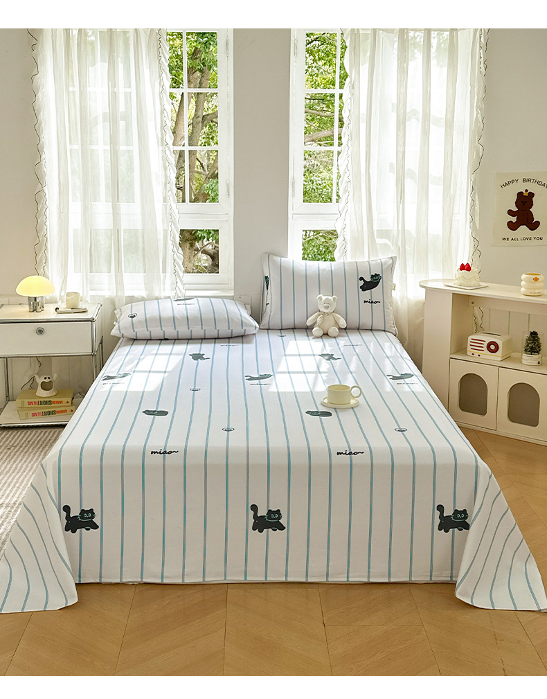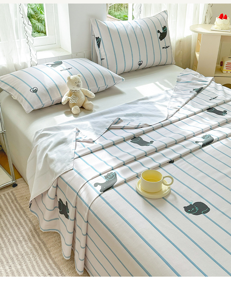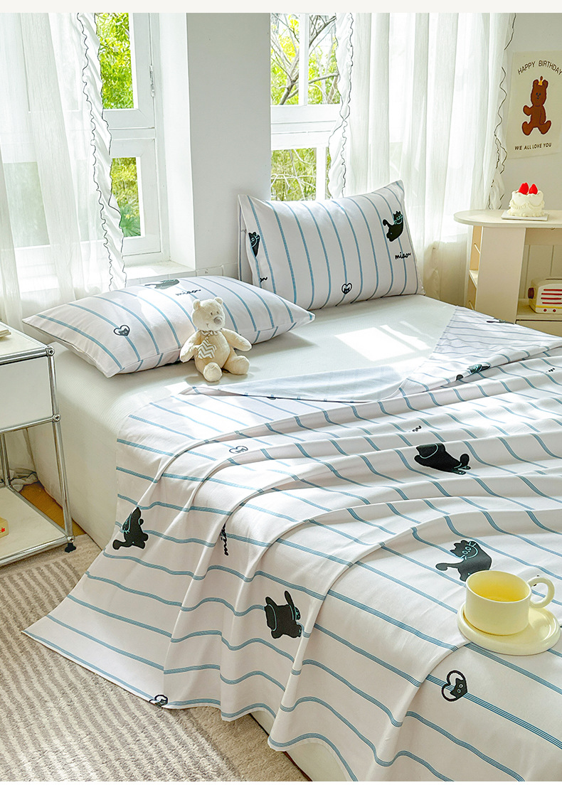 Verano pequeña y clara sábana de tela gruesa vieja de algodón de una sola pieza 100 funda de almohada de edredón impresa de algodón