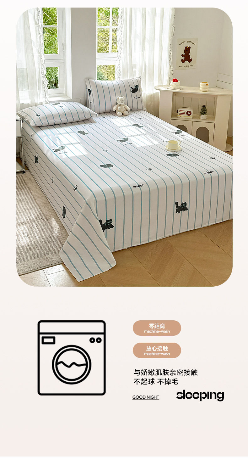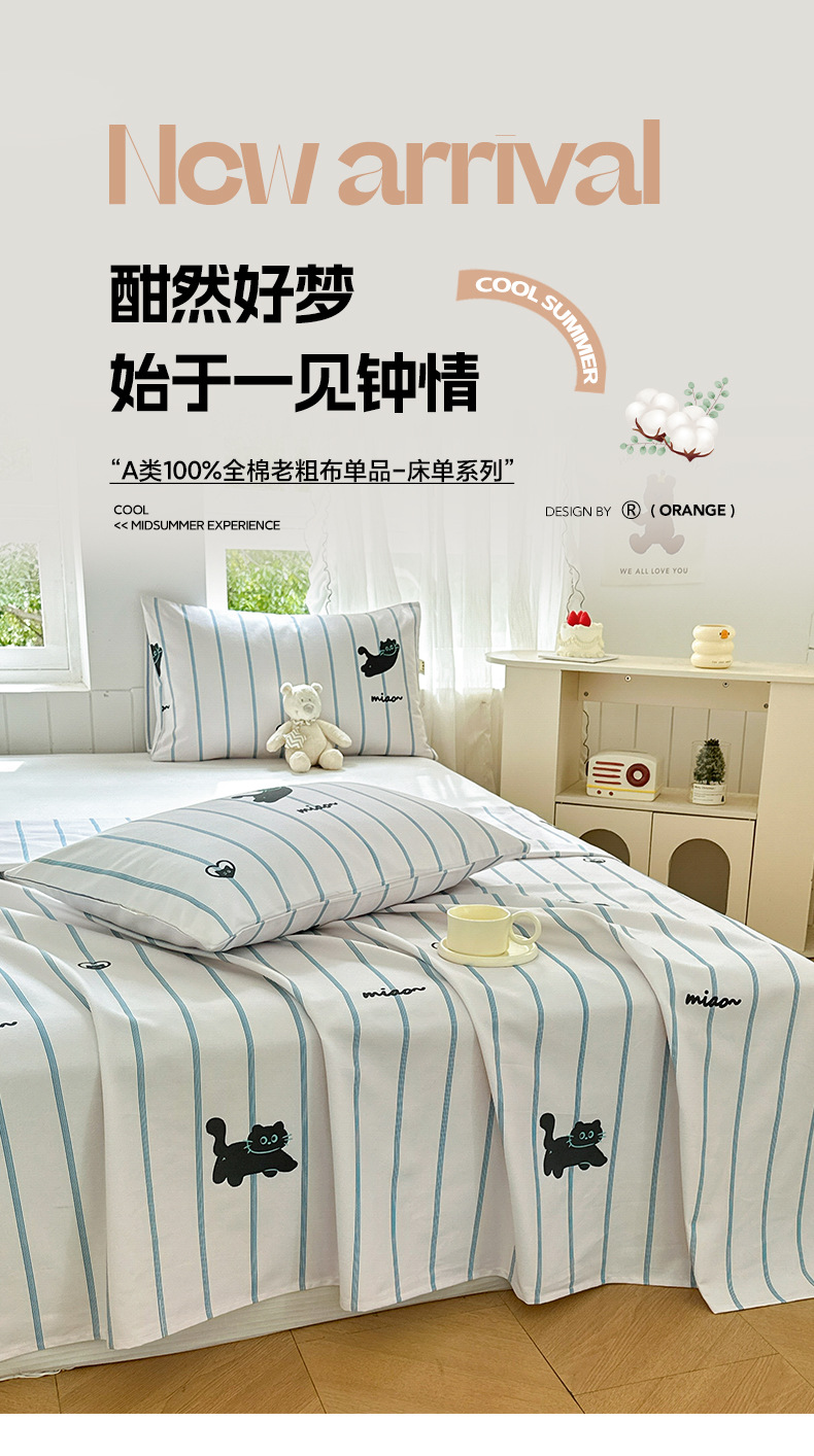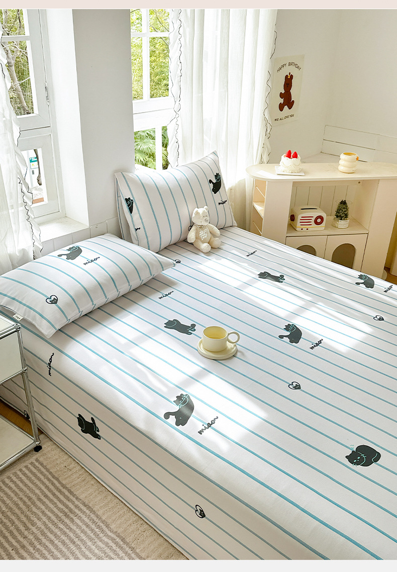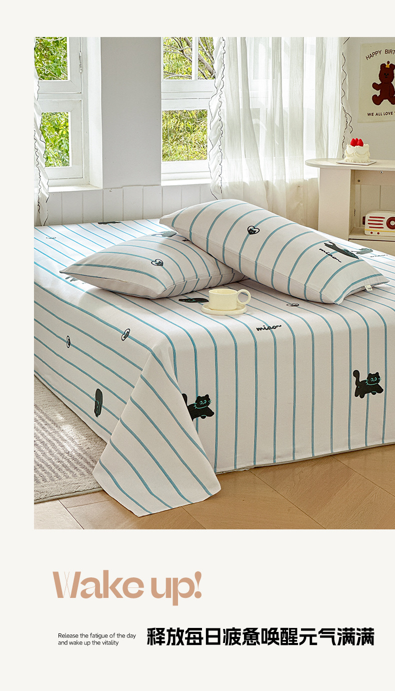Verano pequeña y clara sábana de tela gruesa vieja de algodón de una sola pieza 100 funda de almohada de edredón impresa de algodón