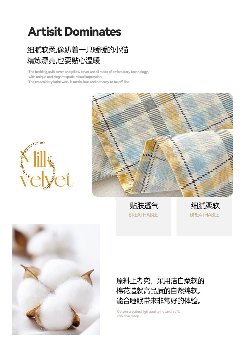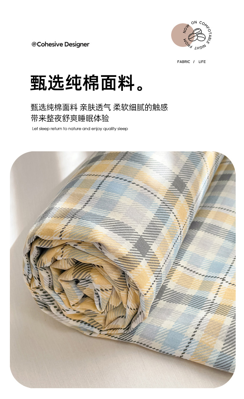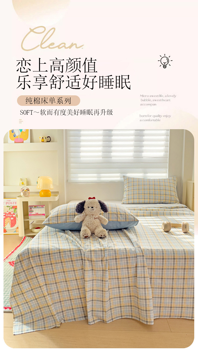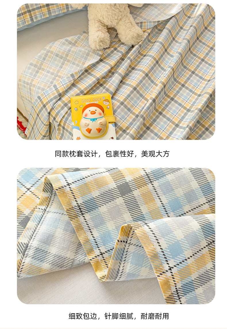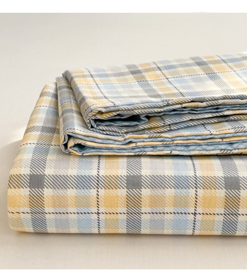 Sábanas a cuadros de algodón puro pieza individual 100 cama individual de algodón funda de almohada para dormitorio infantil traje de tres piezas