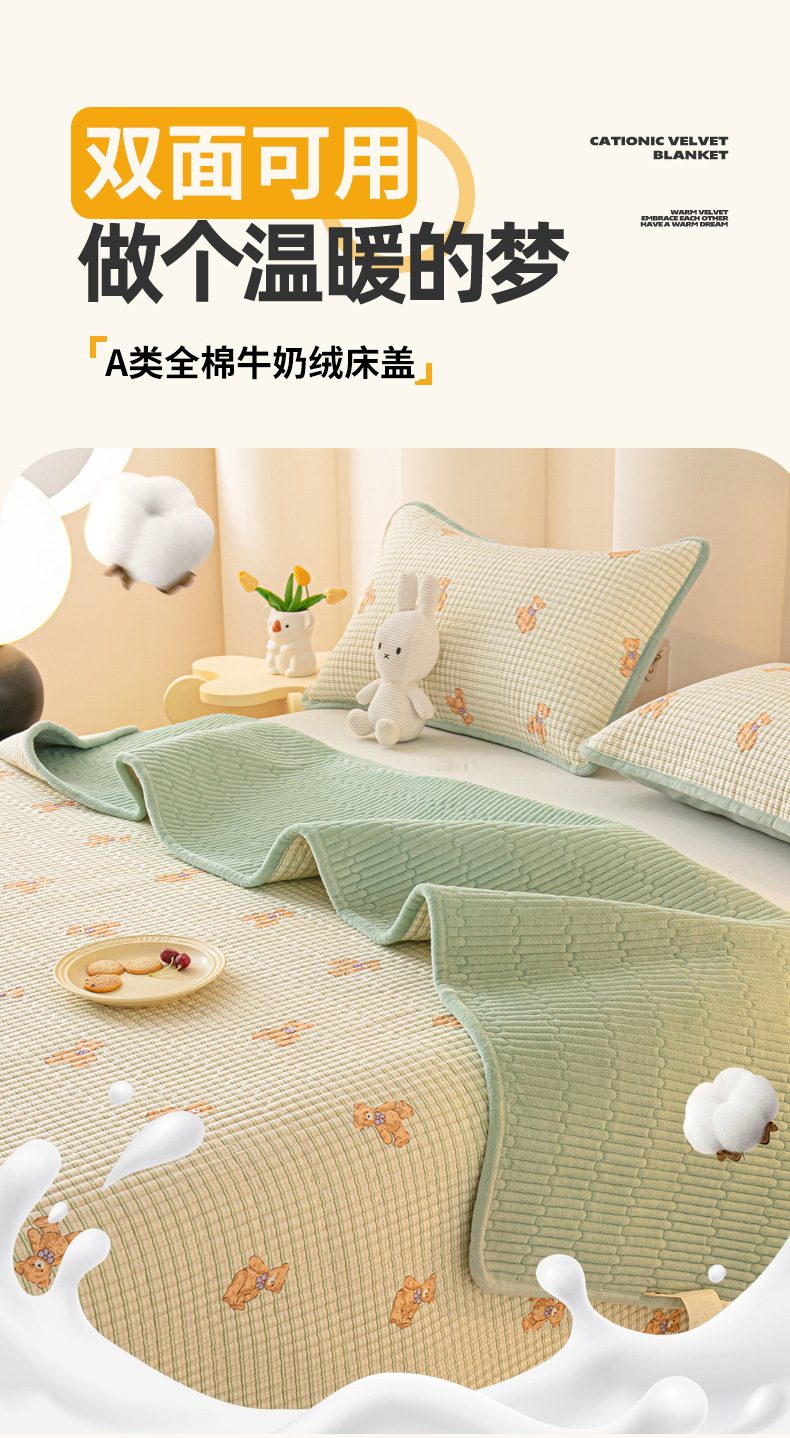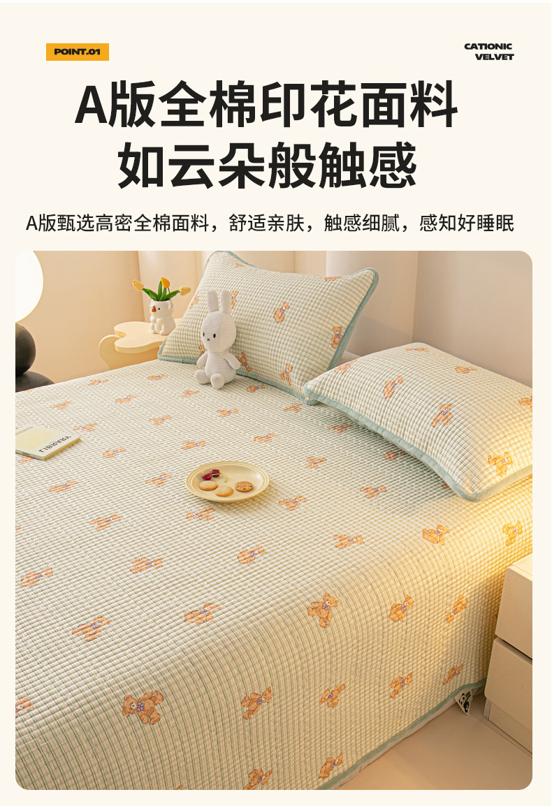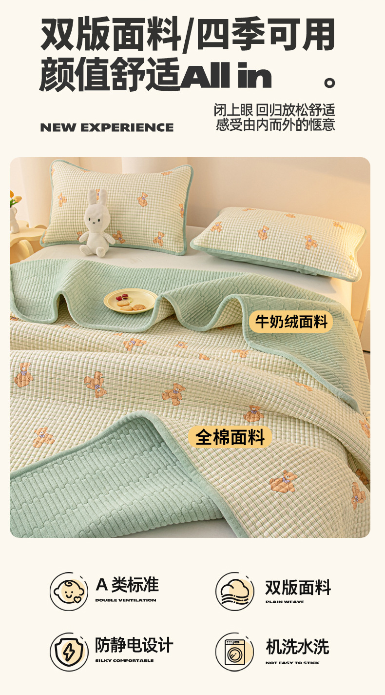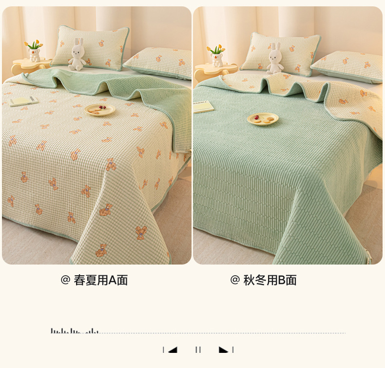 Un lado de algodón puro, un lado más tapa de cama de tatami de terciopelo, sábana acolchada de algodón gruesa, juego de tres piezas, cuatro estaciones universales