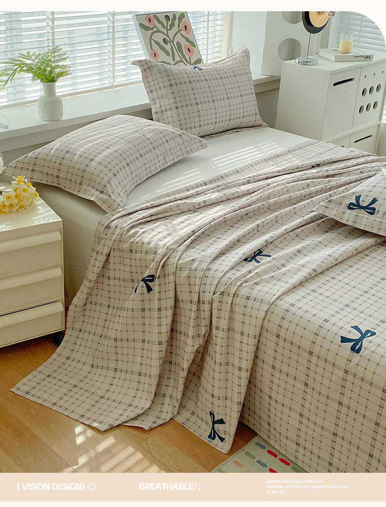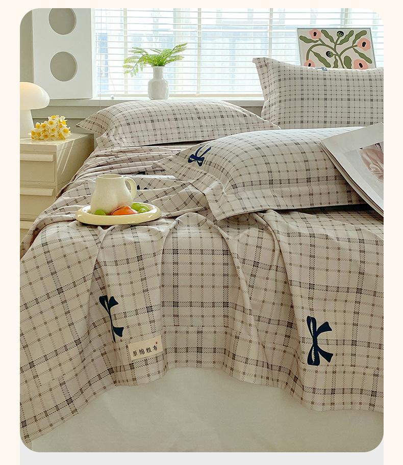 Sábanas de tela gruesa vieja de verano, dormitorio de estudiantes de una sola pieza, funda de cama individual, funda de almohada individual, juego de tres piezas, nuevo estilo 2025