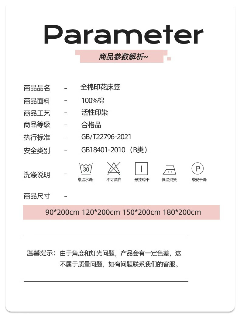 | Especificaciones de tamaño | Sombrilla individual: 90*200cm [adecuada para altura de 5-28cm],Sombrilla individual: 120*200cm [adecuada para altura de 5-28cm],Sombrilla individual: 150*200cm [adecuada para altura de 5-28cm],Sombrilla individual: 180*200cm [adecuada para altura de 5-28cm],Sombrilla de cama de dos piezas: una funda de almohada de cama de 90*200cm,Sombrilla de cama de dos piezas: una funda de almohada de cama de 120*200cm,Juego de sábanas de tres piezas: un par de sábanas y fundas de almohada de 150*200cm,Juego de cama de tres piezas: un par de fundas de almohada de cama de 180*200cm |