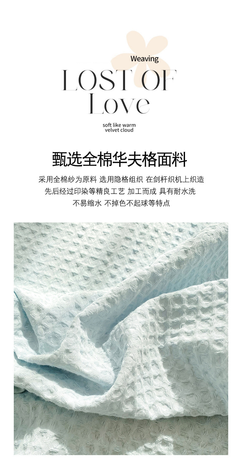 | Especificaciones de tamaño | Hoja de waffle pieza individual-160x235cm [adecuado para cama de 0,9-1,2 m],Hoja de waffle pieza individual-200x235cm [adecuado para cama de 1,2-1,35 m],Hoja de waffle pieza individual-240x250cm [adecuado para cama de 1,5-1,8 m],Hoja de waffle pieza individual-240x270cm [adecuado para una cama de 2.0m],Juego de sábanas waffle de tres piezas-un par de fundas de almohada para sábanas de 160x235cm,Juego de sábanas waffle de tres piezas-200x235cm sábanas fundas de almohada par,Juego de sábanas waffle de tres piezas-un par de fundas de almohada para sábanas de 240x250cm,Juego de sábanas waffle de tres piezas-un par de fundas de almohada para sábanas de 240x270cm,Sombrilla waffle pieza individual-120x200cm [adecuado para colchones de 5-25cm],Sombrilla waffle pieza individual-150x200cm [adecuado para colchones de 5-25cm],Sombrilla waffle pieza individual-180x200cm [adecuado para colchones de 5-25cm],Juego de cama waffle de tres piezas-un par de fundas de almohada de cama 150x200cm,Juego de cama waffle de tres piezas-un par de fundas de almohada de cama de 180x200cm,Juego de cama waffle de tres piezas-un par de fundas de almohada de cama 200x220cm,Sombrilla Waffle de una sola pieza-200x220cm [adecuado para colchones de 5-25cm],Juego de cama waffle de tres piezas-un par de fundas de almohada de cama 120x200cm |