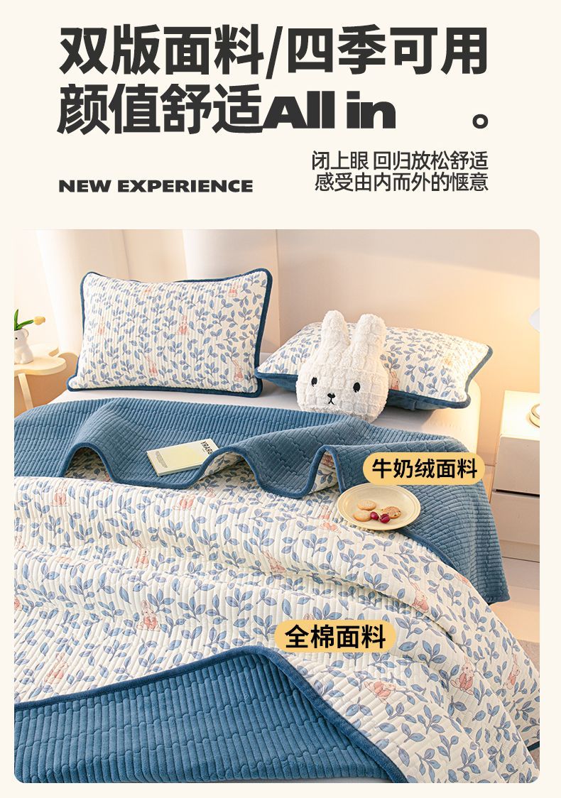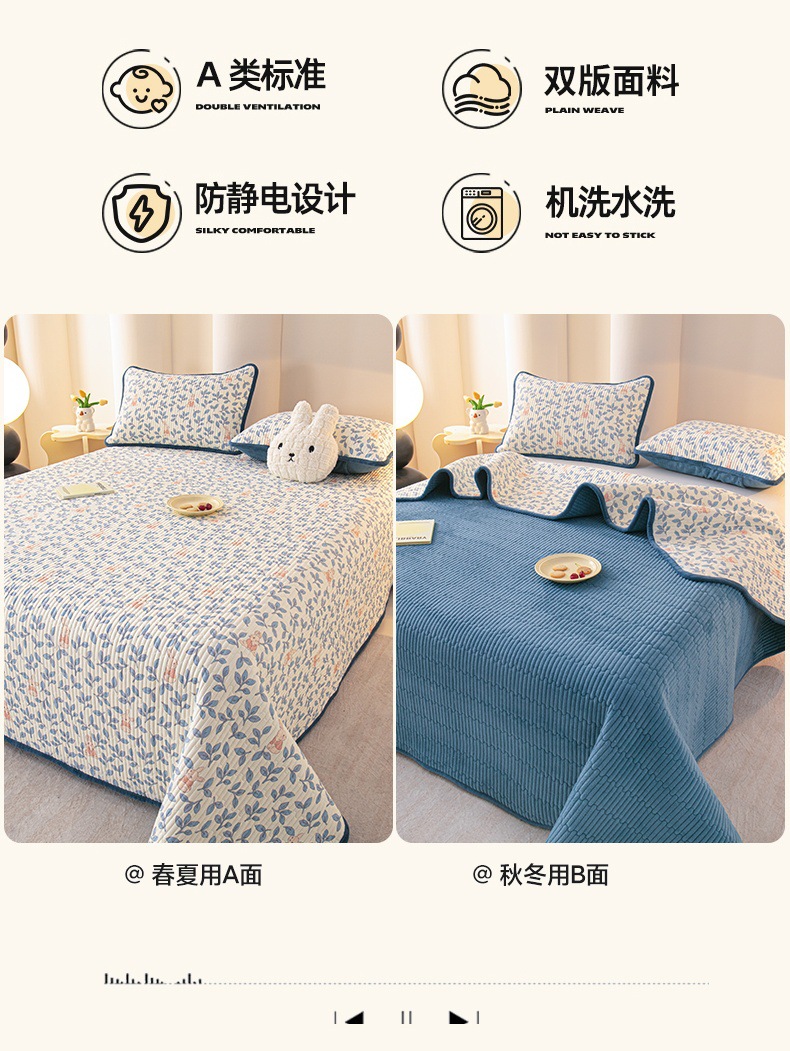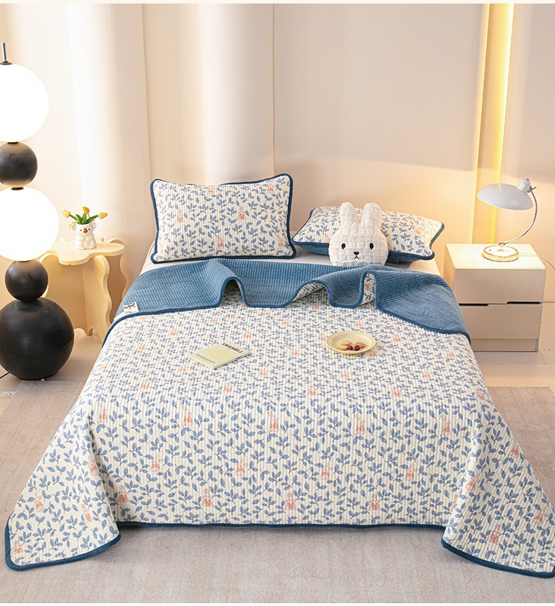 Un lado de algodón puro, un lado más tapa de cama de tatami de terciopelo, sábana acolchada de algodón gruesa, juego de tres piezas, cuatro estaciones universales