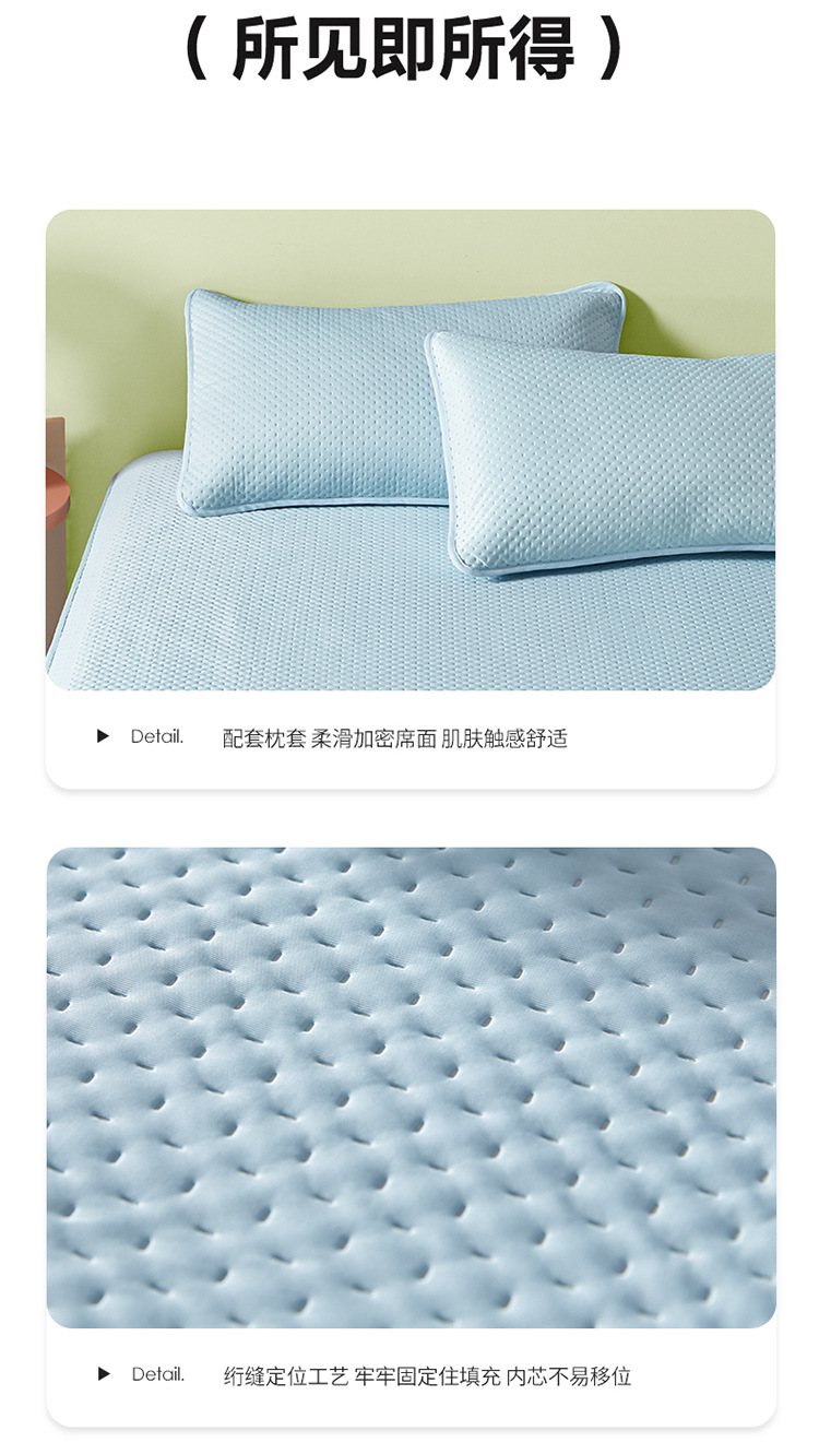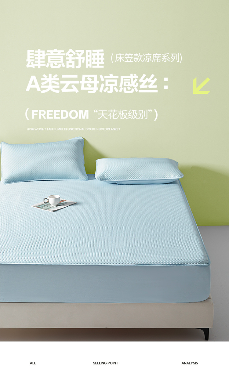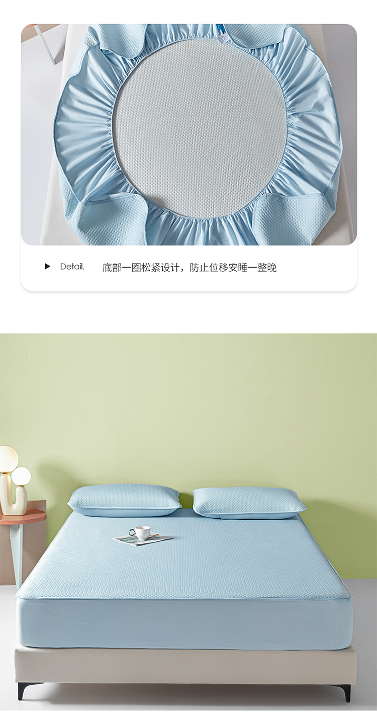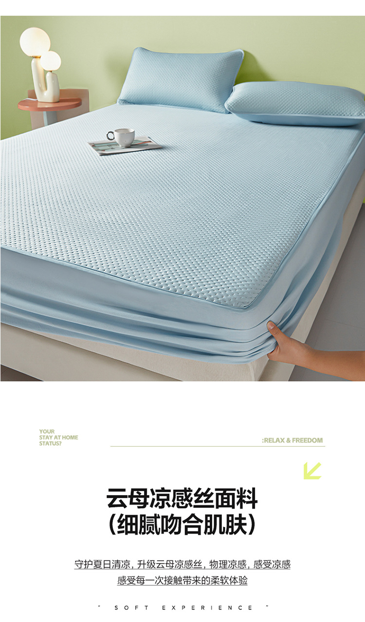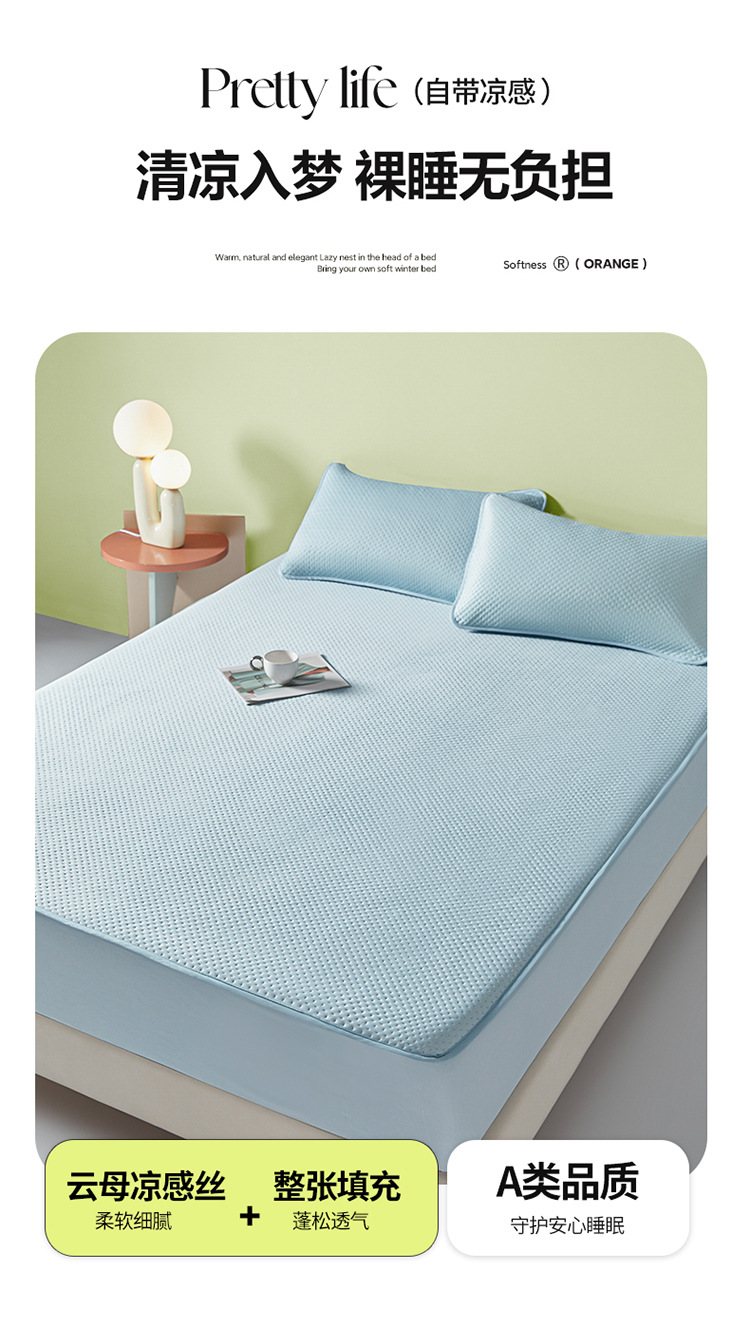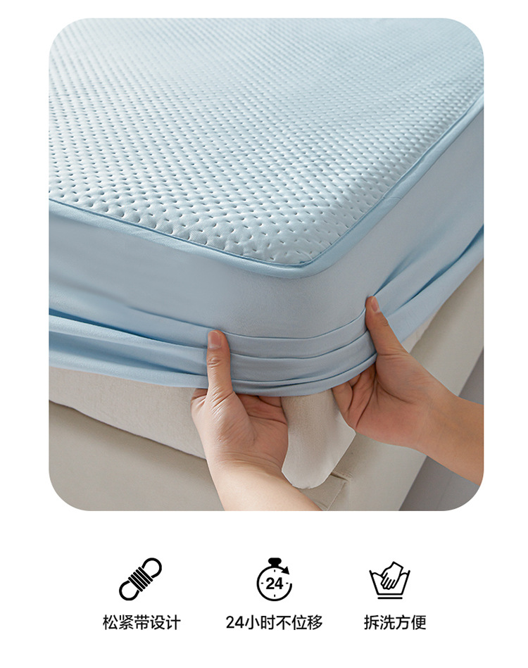 Sombrilla de cama fría de seda de hielo de una sola pieza de verano con todo incluido, funda de cama, funda de cama antideslizante, juego de tres piezas, nuevo estilo 2025