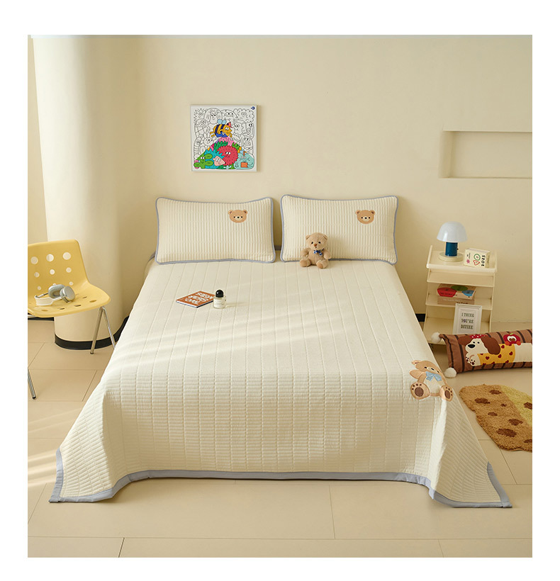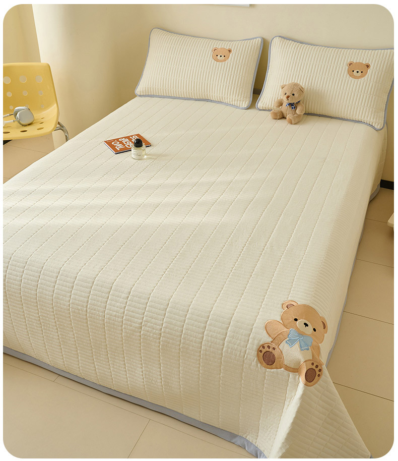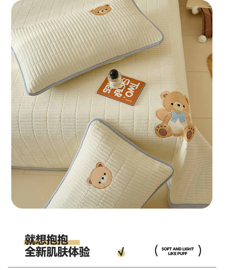 [Juego de tres piezas con tapa de cama] Funda de almohada con tapa de cama de 1.6*2.2m/par [lindo oso bordado para dormir desnudo]