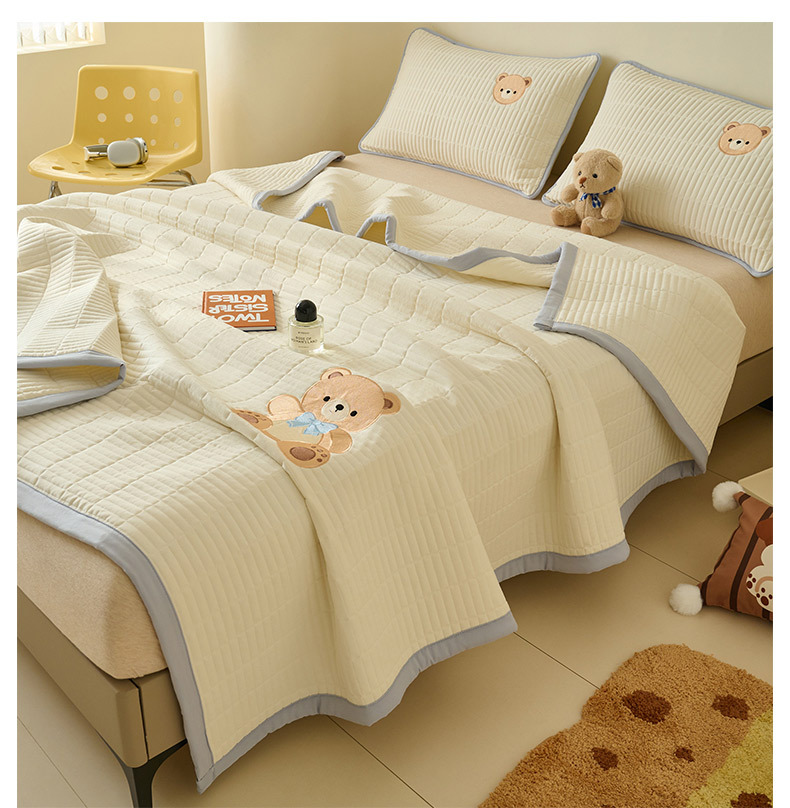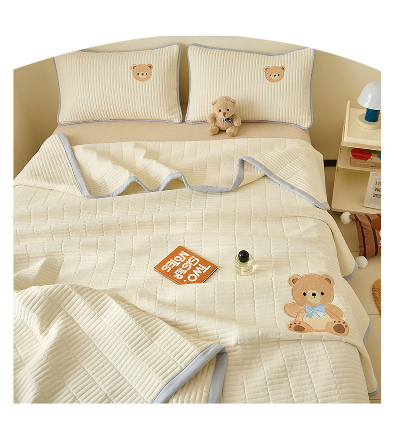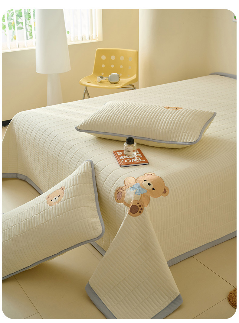 [Juego de tres piezas con tapa de cama] Funda de almohada con tapa de cama de 2.2*2.4m/par [lindo oso bordado para dormir desnudo]