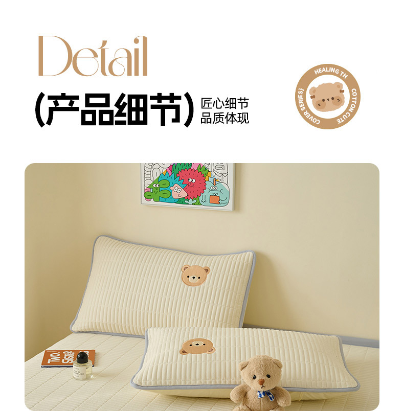 [Juego de tres piezas con tapa de cama] Funda de almohada con tapa de cama de 2.0*2.2m/par [lindo oso bordado para dormir desnudo]