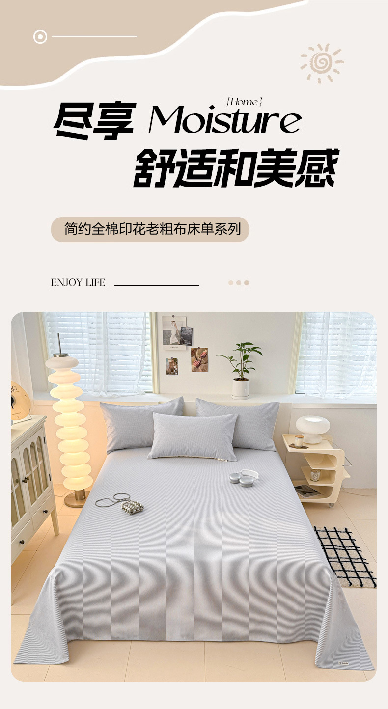 Sábana de tela gruesa vieja de algodón de verano, pieza única 2025 nuevo dormitorio de estudiantes de algodón, funda de almohada individual, juego de tres piezas
