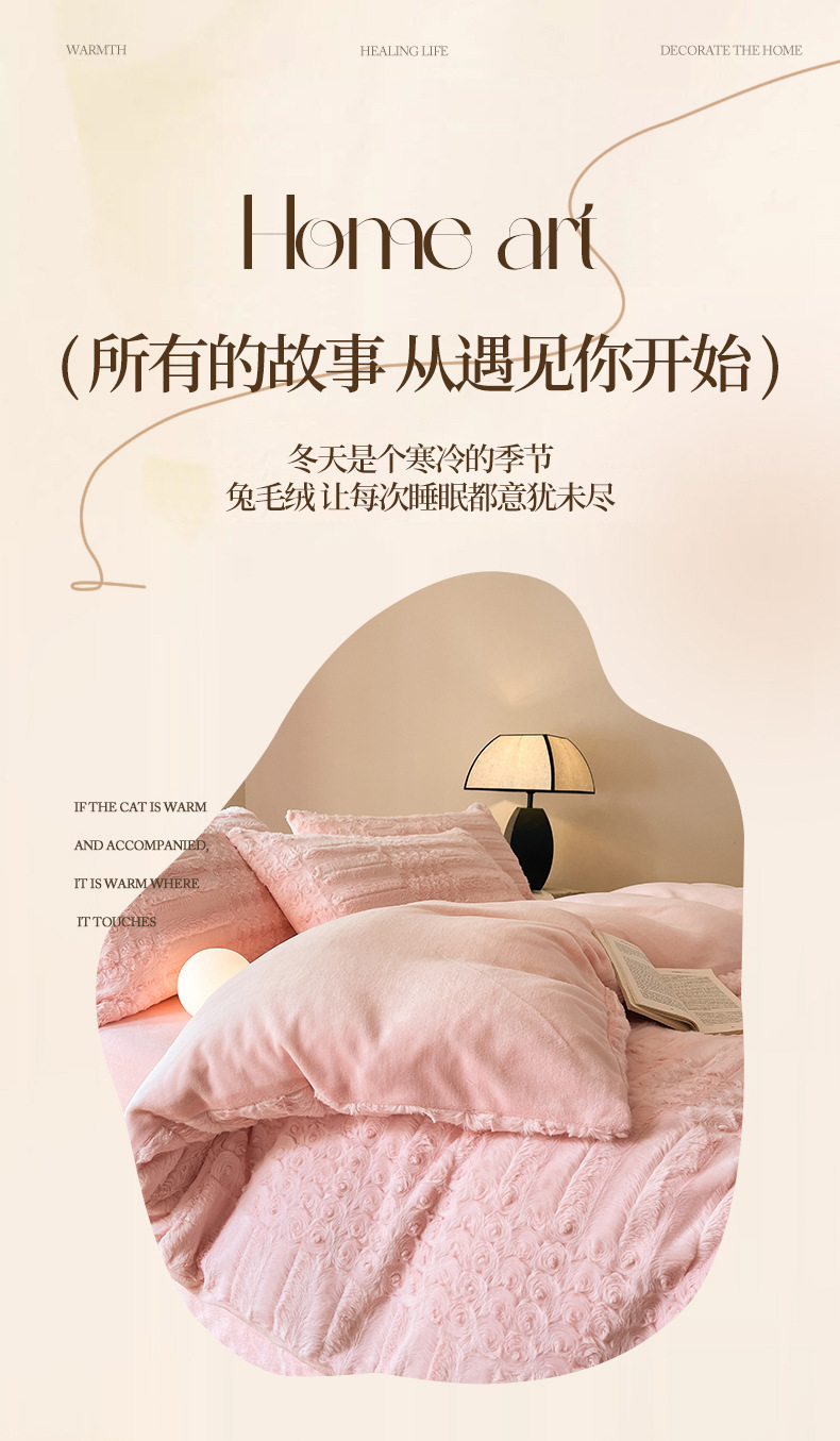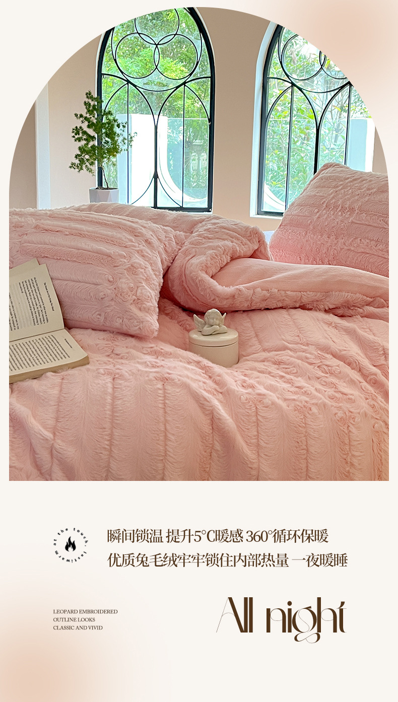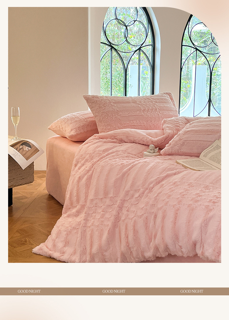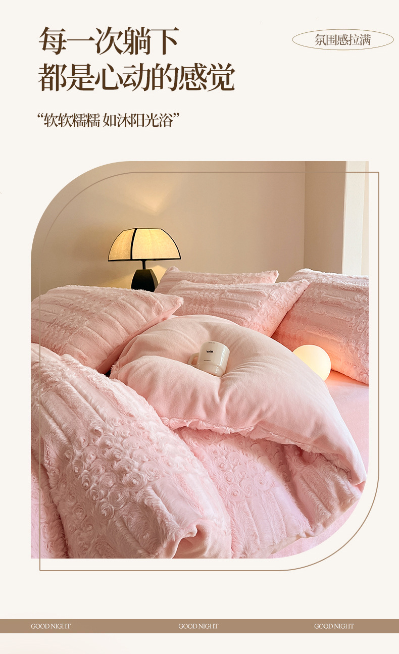 Cama de felpa de cuatro piezas Ropa de cama de lana de leche gruesa de invierno Ropa de cama de lana de coral más ropa de cama de edredón de terciopelo