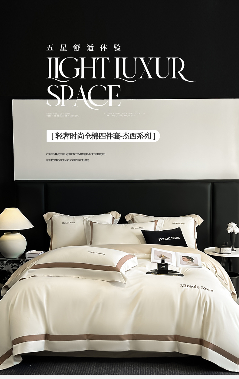 Cama de algodón de lujo ligero de alta gama de cuatro piezas de algodón 2025 nueva ropa de cama de tres piezas con funda de edredón de alta calidad