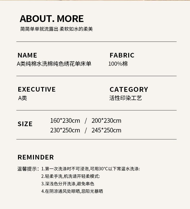 | Especificaciones de tamaño | Ropa de cama individual: 160cm x 230cm (para cama de 1,0 m),Ropa de cama individual: 200cm x 230cm (para cama de 1,2/1,35 m),Ropa de cama individual: 230cm x 250cm (para camas de 1,5/1,8 m),Ropa de cama individual: 245cm x 250cm (para cama de 1.8/2.0 m),Sábana de dos piezas: 160cmx230cm sábana con un par de fundas de almohada,Juego de sábanas de tres piezas: un par de sábanas de 200cm x 230cm con fundas de almohada,Juego de sábanas de tres piezas: un par de sábanas de 230cmx250cm con fundas de almohada,Juego de sábanas de tres piezas: un par de sábanas de 245cmx250cm con fundas de almohada |