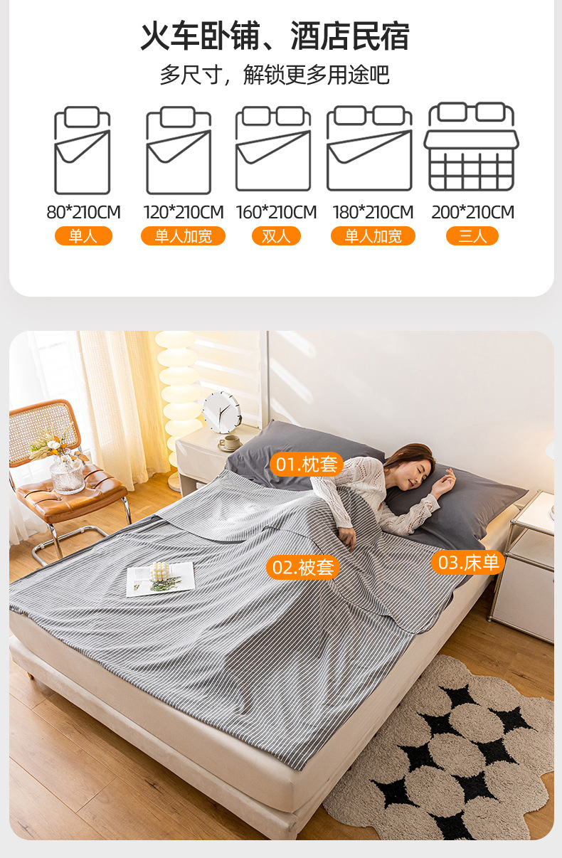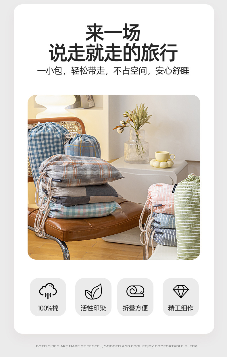Nuevo estilo de hotel de algodón puro saco de dormir sucio sábana funda edredón viaje portátil de cuatro piezas