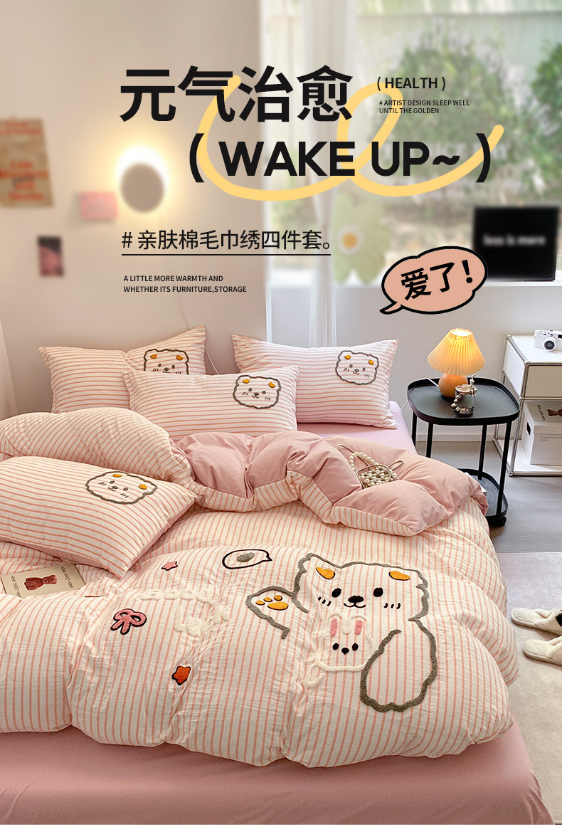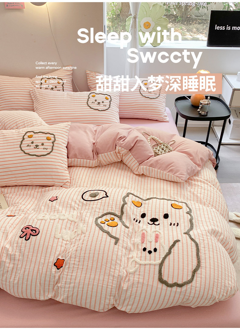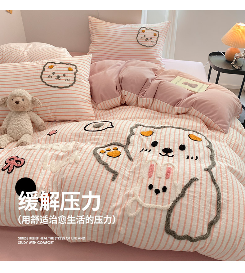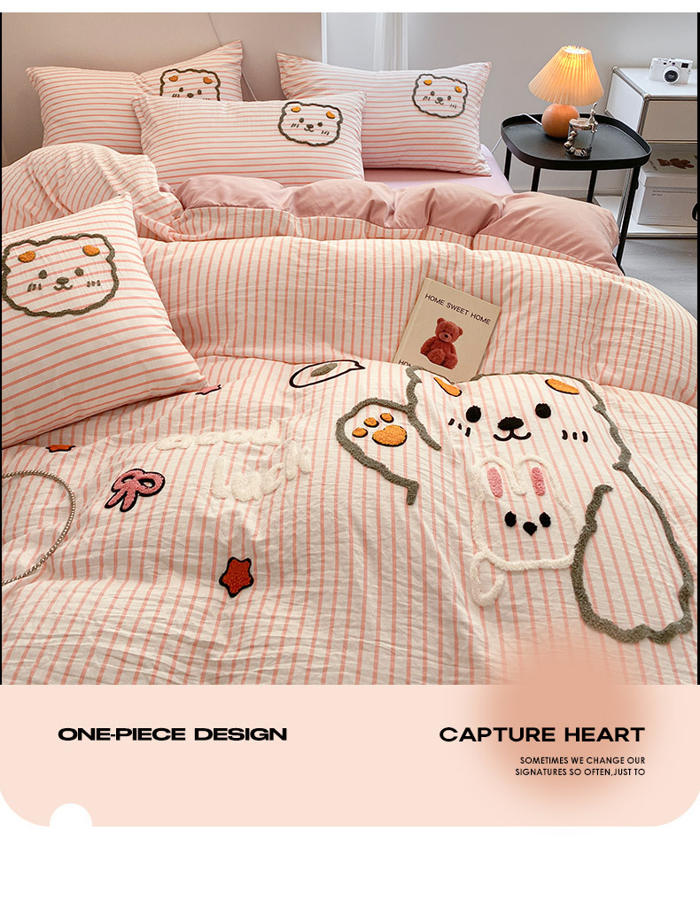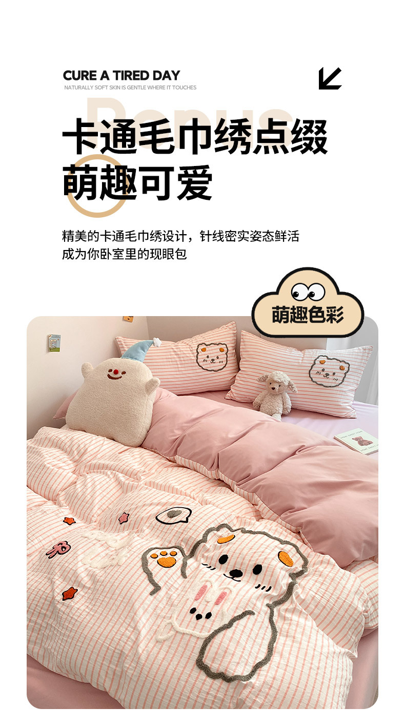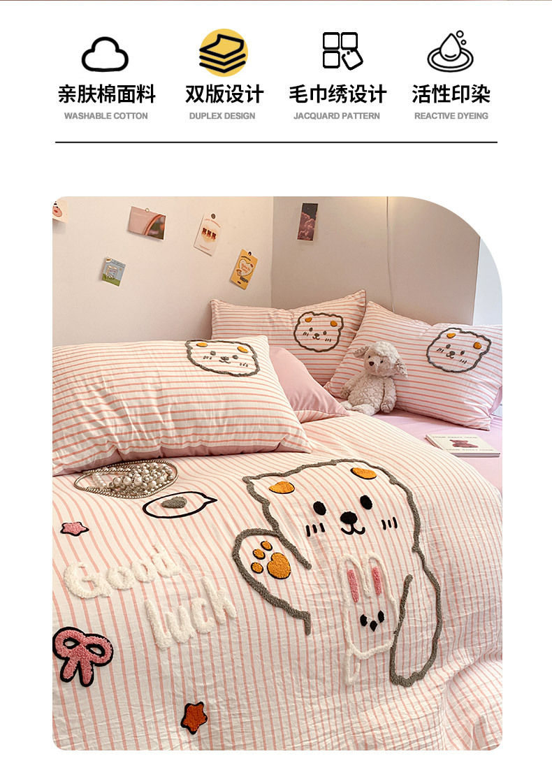 Juego de Ropa de Cama de Cuatro Piezas con Bordado de Toalla, Estilo Nuevo 2025, Sábana, Funda de Edredón para Dormitorio, Juego de Ropa de Cama Universal de Tres Piezas para las Cuatro Estaciones