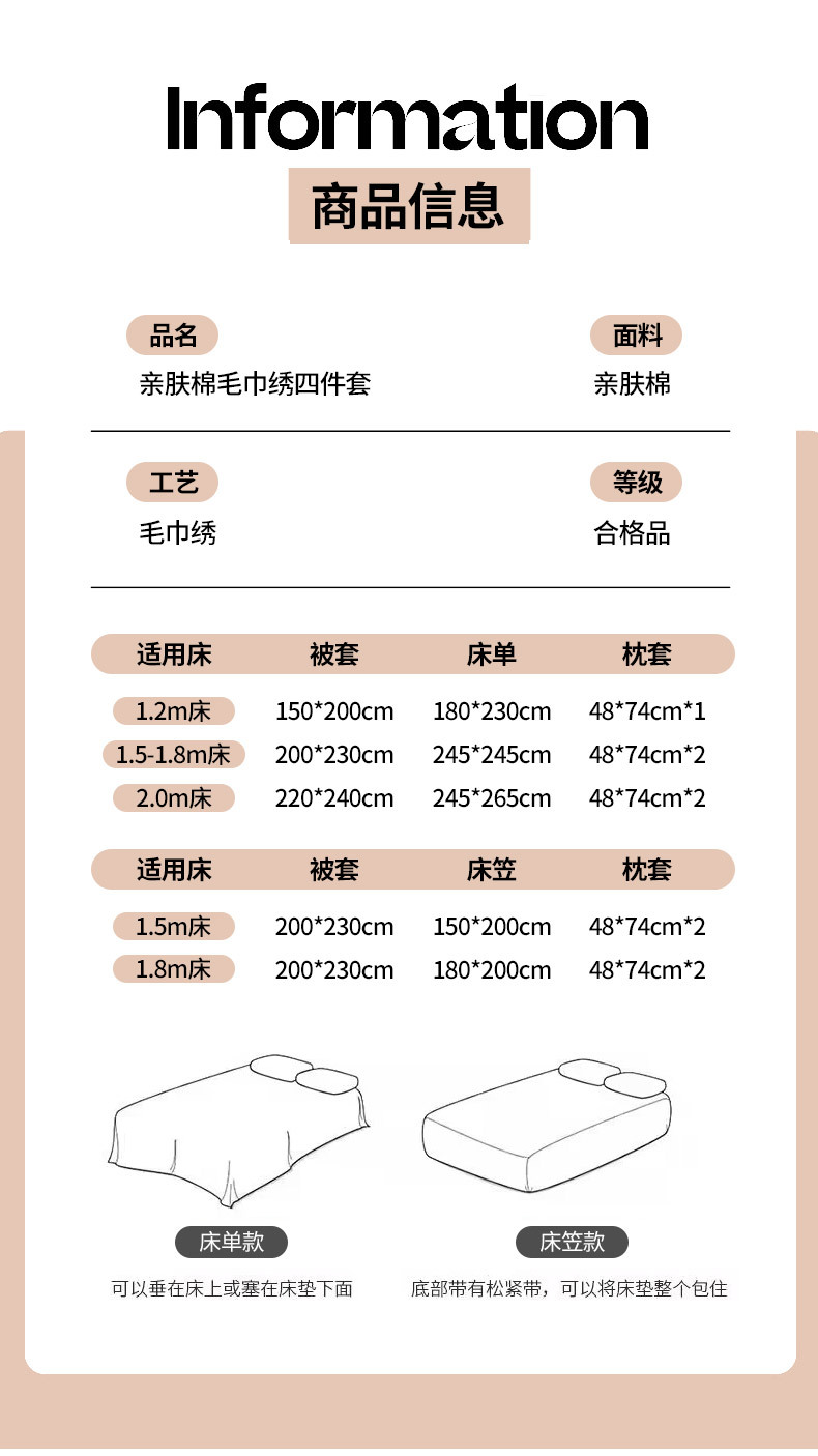| Especificaciones de tamaño | Cama de 0,9 m [Juego de sábanas de tres piezas]-Adecuado para edredón de 150x200cm,Cama de 1,2 m [Juego de sábanas de tres piezas]-adecuado para núcleo de edredón de 150x200cm,Cama de 1,5 m [Juego de sábanas de cuatro piezas]-Adecuado para edredón de 200x230cm,Cama de 1,8 m [Juego de sábanas de cuatro piezas]-Adecuado para edredón de 200x230cm,Cama de 2.0m [Juego de sábanas de cuatro piezas]-Adecuado para edredón de 220x240cm,Cama de 1,5 m [juego de cuatro piezas de sábana]-adecuada para edredón de 200x230cm,Cama de 1,8 m [juego de cuatro piezas de sábana]-adecuado para edredón de 200x230cm |