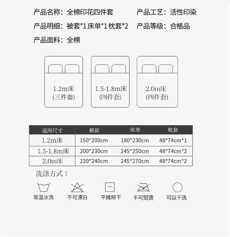 | Especificaciones de tamaño | Cama de 0,9 m [juego de cama de dormitorio de tres piezas] adecuado para edredón de 150x200cm,Cama de 1,2 m [Juego de sábanas de tres piezas] adecuado para núcleo de edredón de 150x200cm,Cama de 1,5 m [Juego de sábanas de cuatro piezas] Adecuado para edredón de 200x230cm,Cama de 1,8 m [Juego de sábanas de cuatro piezas] adecuado para edredón de 200x230cm,Cama de 2.0m [Juego de sábanas de cuatro piezas] Adecuado para edredón de 220x240cm |