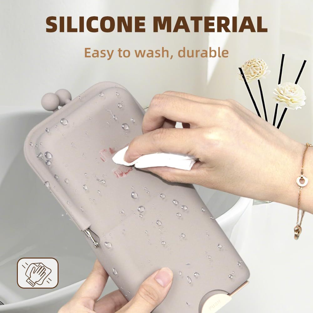 Amazon nuevo producto de silicona maquillaje cepillo bolsa de almacenamiento soporte de teléfono móvil 2 en 1 bolsa de almacenamiento de maquillaje impermeable de viaje