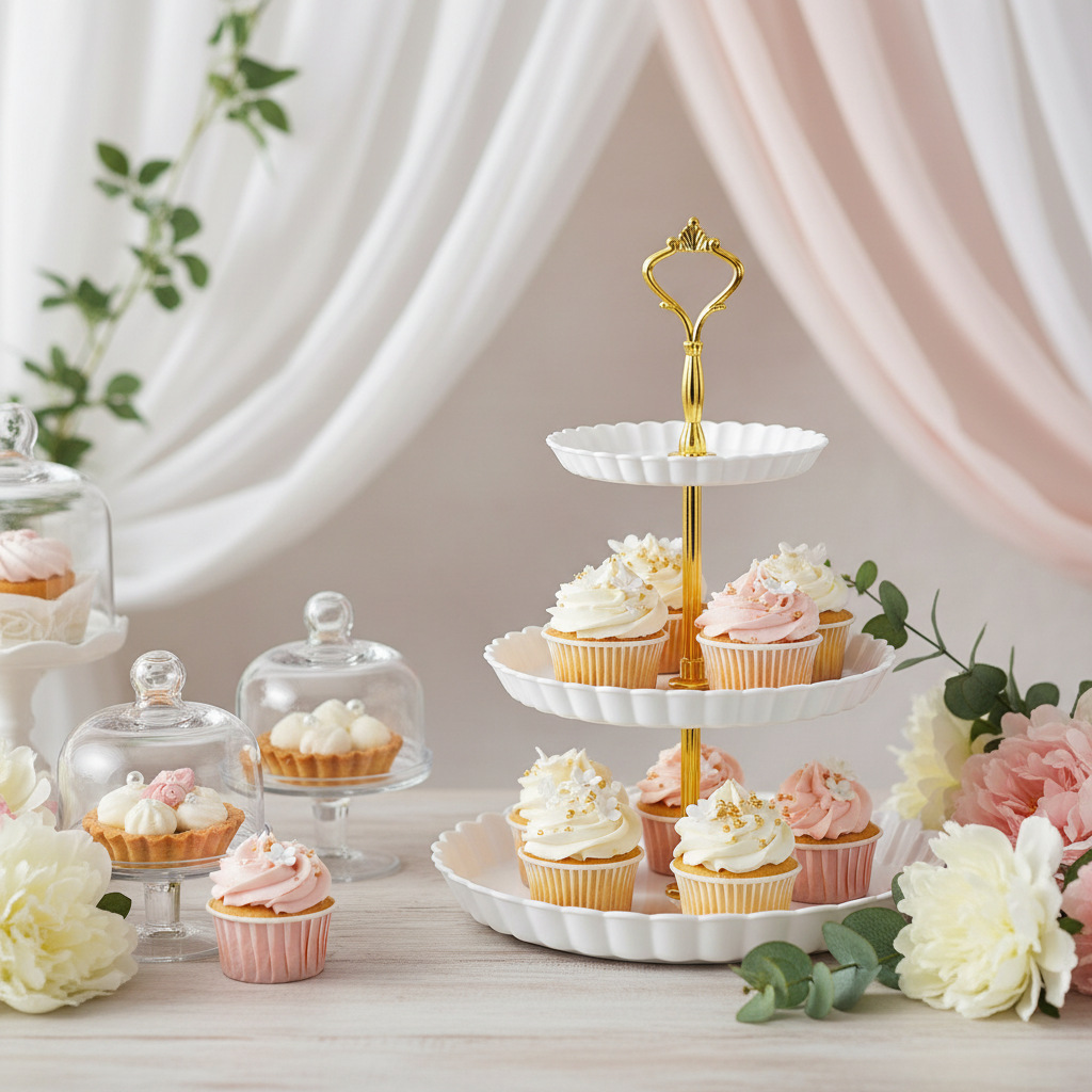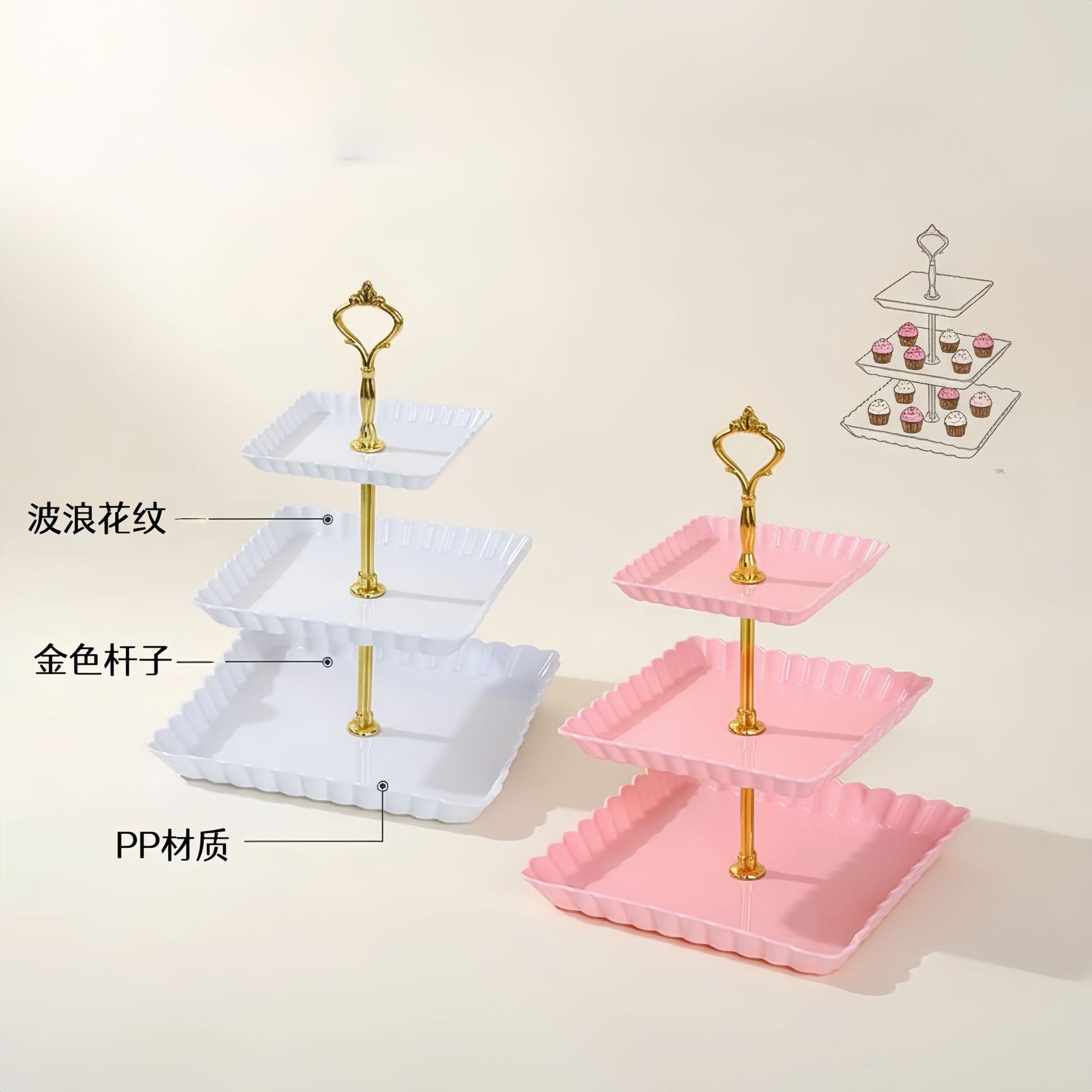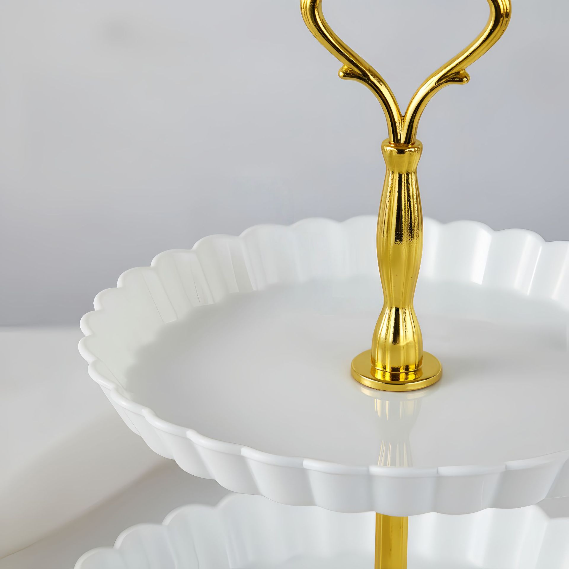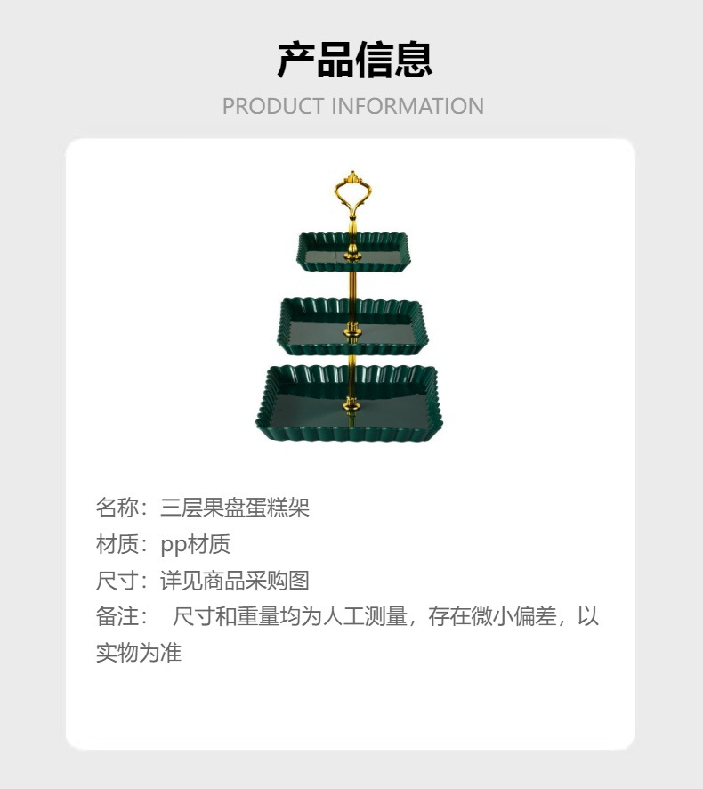 Plato de frutas de plástico transfronterizo de dulces de lujo ligero de alta calidad platos de dulces de recepción de boda de tres capas estante de almacenamiento de pastel