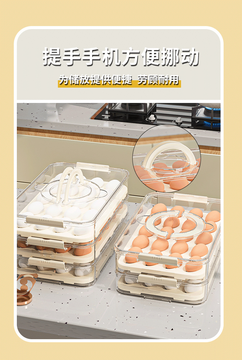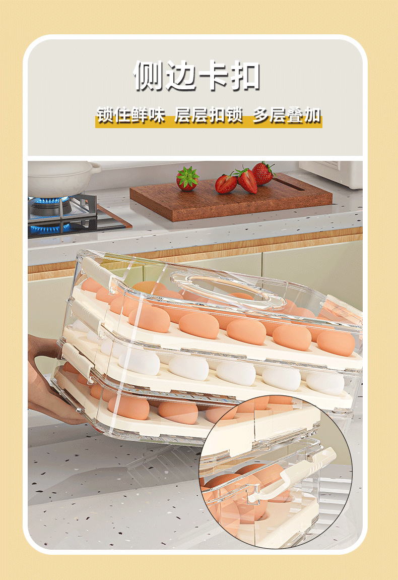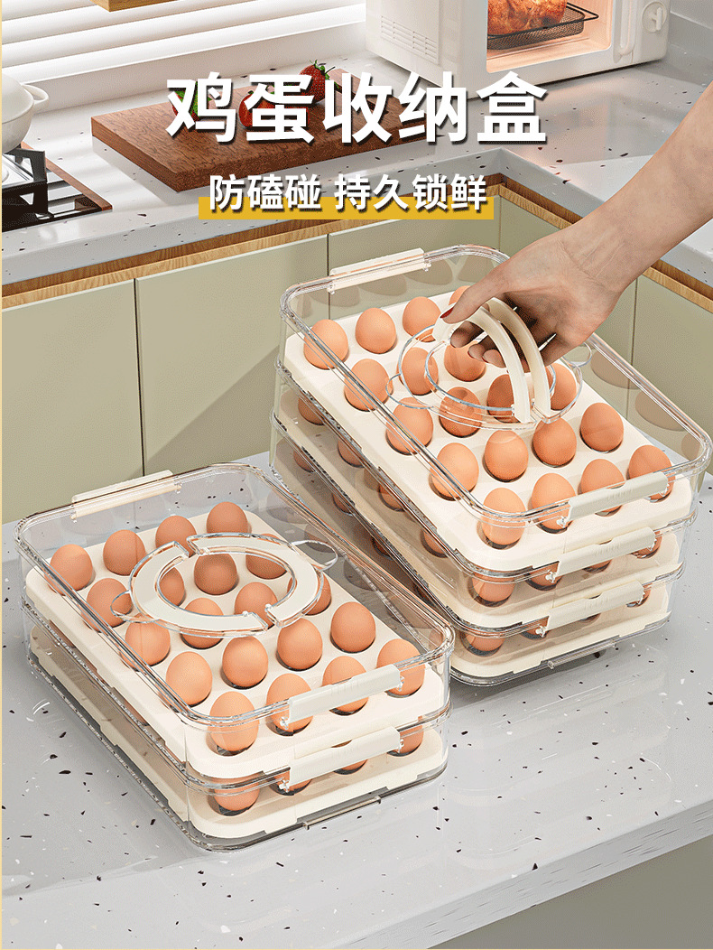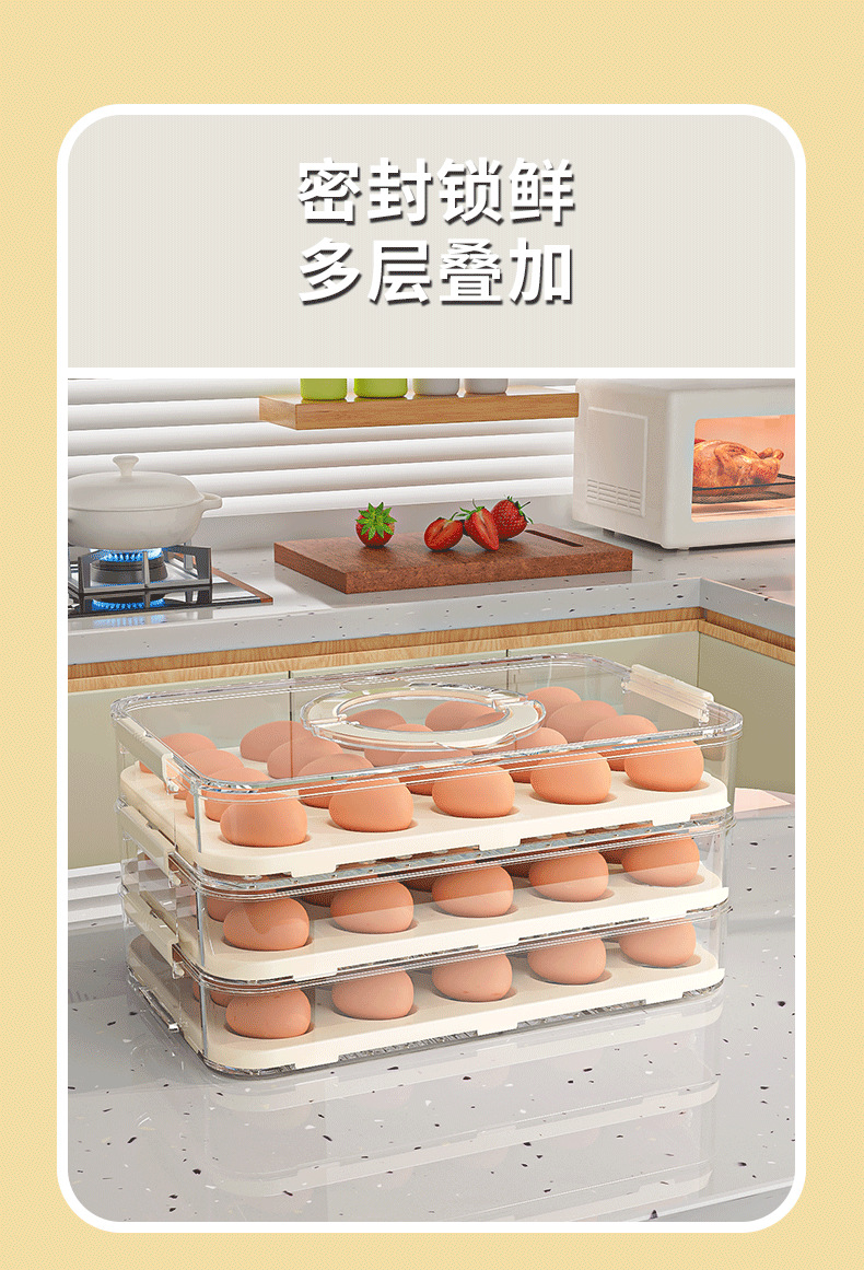 Refrigerador a prueba de polvo caja de almacenamiento de rejilla dividida de plástico cocina caja de conservación sellada para el hogar caja de almacenamiento de huevos portátil de grado alimenticio