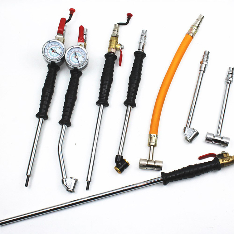 | Especificaciones y modelos | Barra de inflado en forma de T de mango óptico, barra de inflado en forma de gancho de mango óptico, barra de inflado en forma de gancho de mango de goma, barra de inflado de manguera amarilla, barra de inflado de mango recto con reloj, barra de inflado de gancho de carro con reloj |
