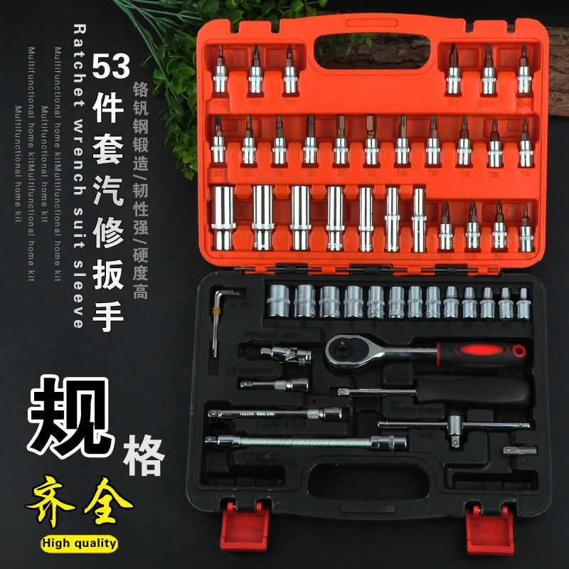 Caja de herramientas de reparación y reparación de motocicletas de automóviles conjunto de 53 Piezas 72 dientes herramientas de reparación de automóviles traje de combinación de cabeza de lote de manga