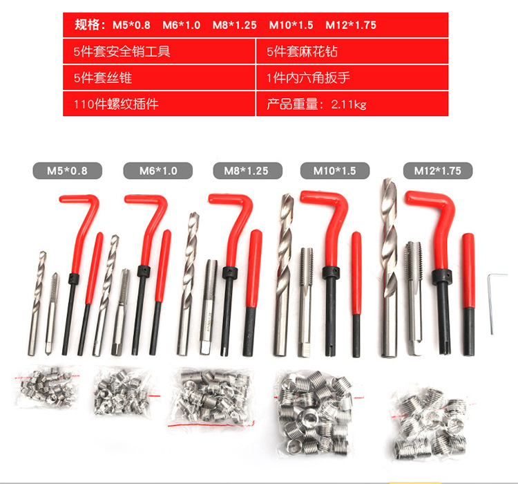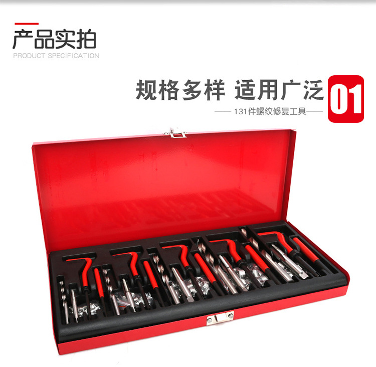 Juego de 131 piezas para reparación de roscas automotrices, que incluye llaves de roscado y herramientas de reparación de roscas, kit de herramientas completo.