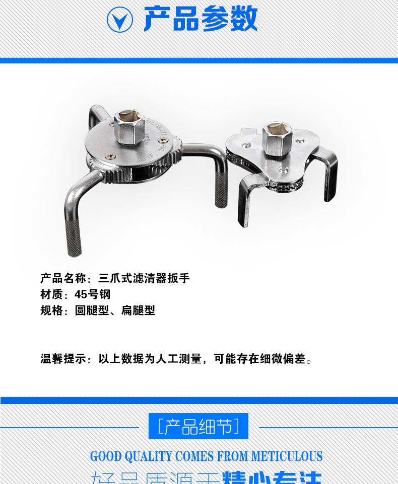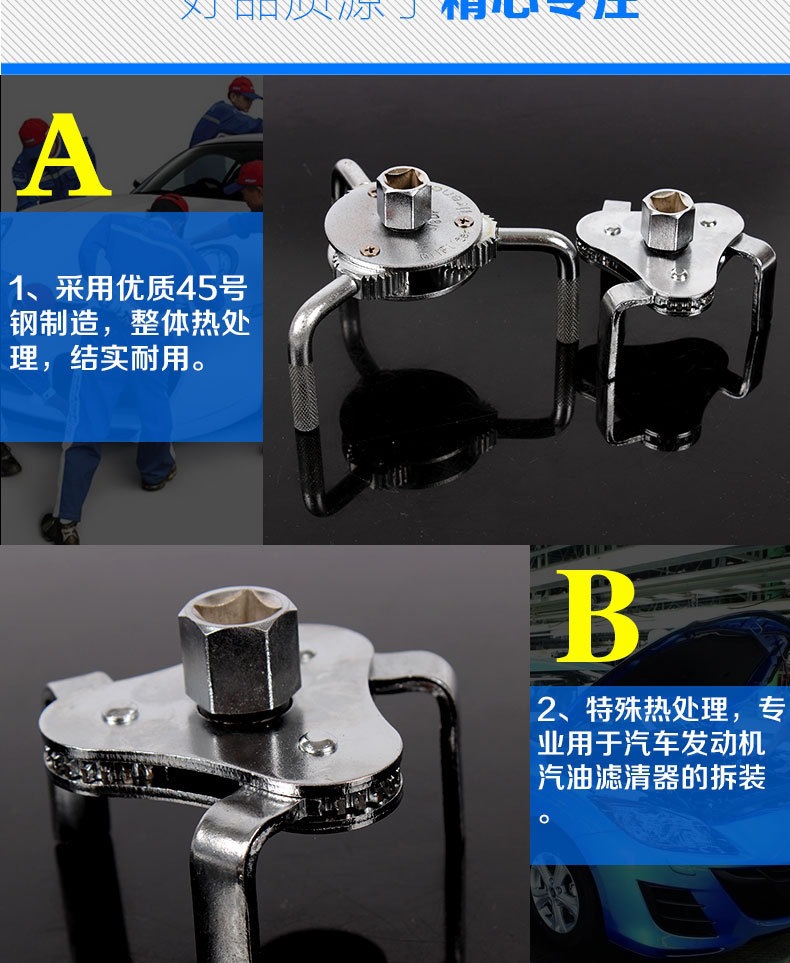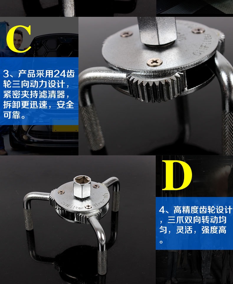Venta directa de fábrica de llaves para filtros de aceite de doble propósito, redondas y planas, llaves para filtros de tres garras al por mayor.