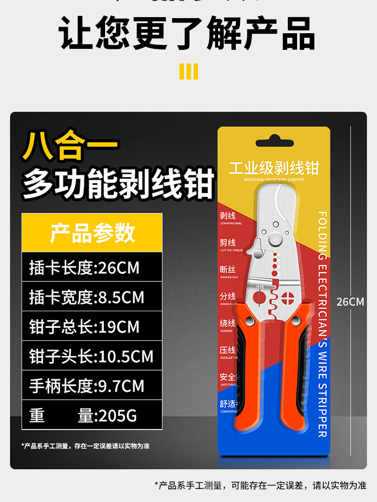 | Especificaciones y modelos | Ocho en uno pinzas de descasco de alambre - [carga de tarjeta de inserción de alta calidad] |
