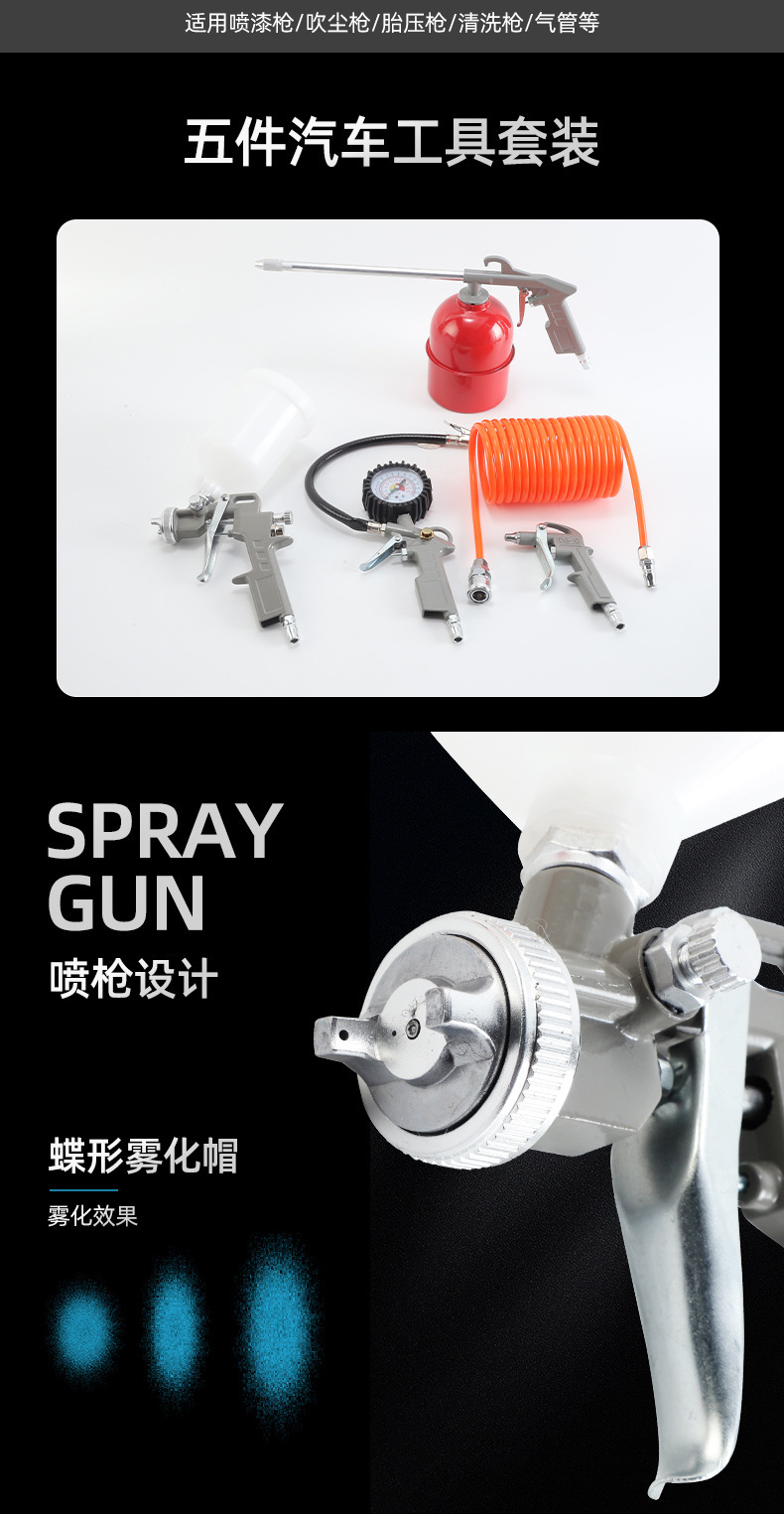 Pistola de pulverización de pintura explosiva transfronteriza, conjunto de cinco piezas, pistola de pulverización de alta atomización, herramientas neumáticas de pulverización