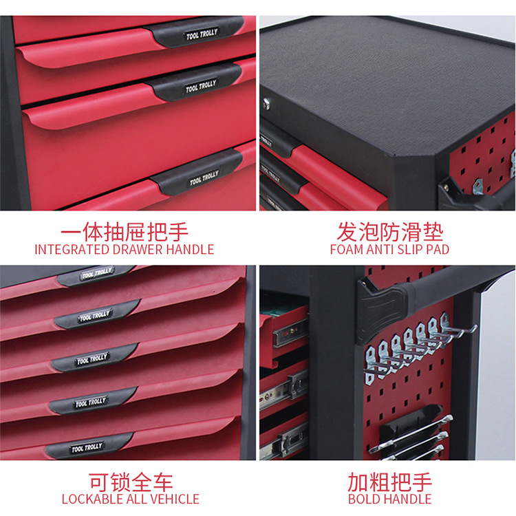 | Modelo | Tipo de tres cajones,Tres cajones con 264 herramientas,Tres-cajón con 158 herramientas,Tipo de siete cajones,De siete cajones con 333 herramientas,Siete-cajón con 250 herramientas,Siete-cajón con 352 herramientas,Tipo de siete cajones con 421 herramientas,Estilo de Bahía + 333 piezas,Estilo todoterreno + 368 piezas |