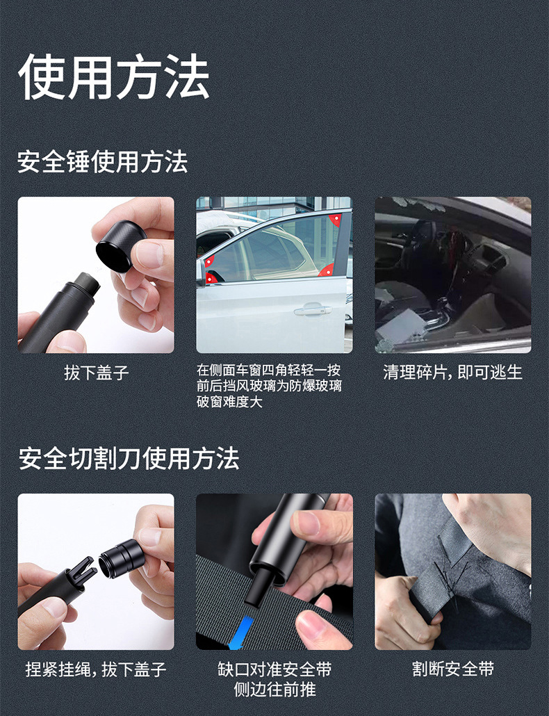 Coche martillo de seguridad aleación de aluminio coche vida martillo multifuncional submarino emergencia tungsteno acero escape martillo mini ventana interruptor