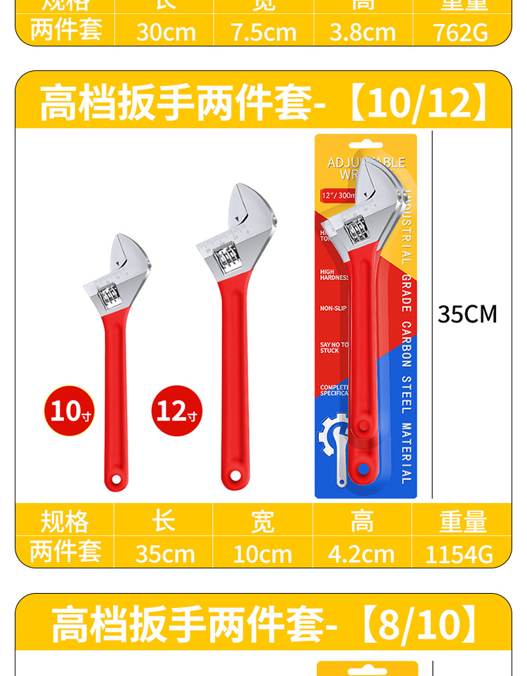 ![[Fabricante de herramientas] Conjunto de naranja negro Mango galvanizado niquelado llave ajustable de 8 pulgadas de 10 pulgadas 12 pulgadas llave ajustable](https://cbu01.alicdn.com/img/ibank/15284050365_562181546.jpg?x-oss-process=image/resize,m_pad,h_300,w_300,limit_0)