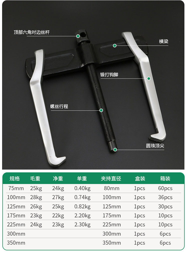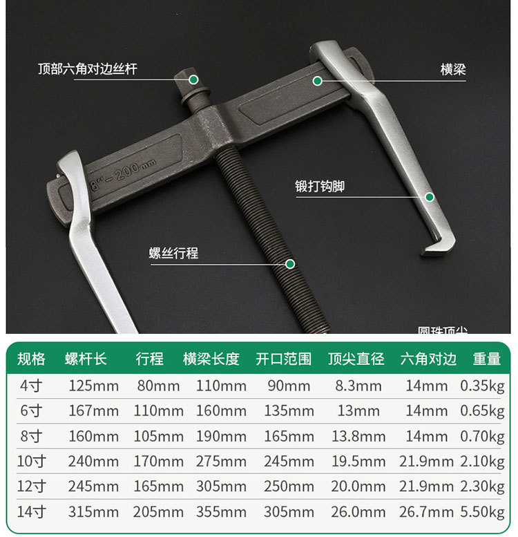 Extractor de dos mandíbulas, extractor universal de rodamientos, herramienta de desmontaje, extractor de poleas, extractor de rodamientos internos multifuncional de dos mandíbulas.