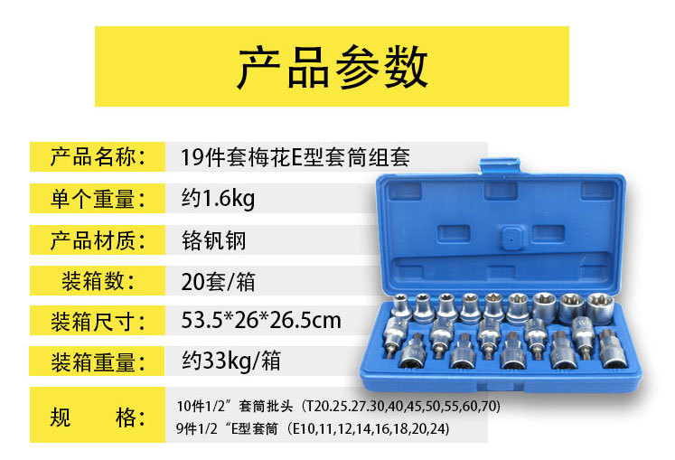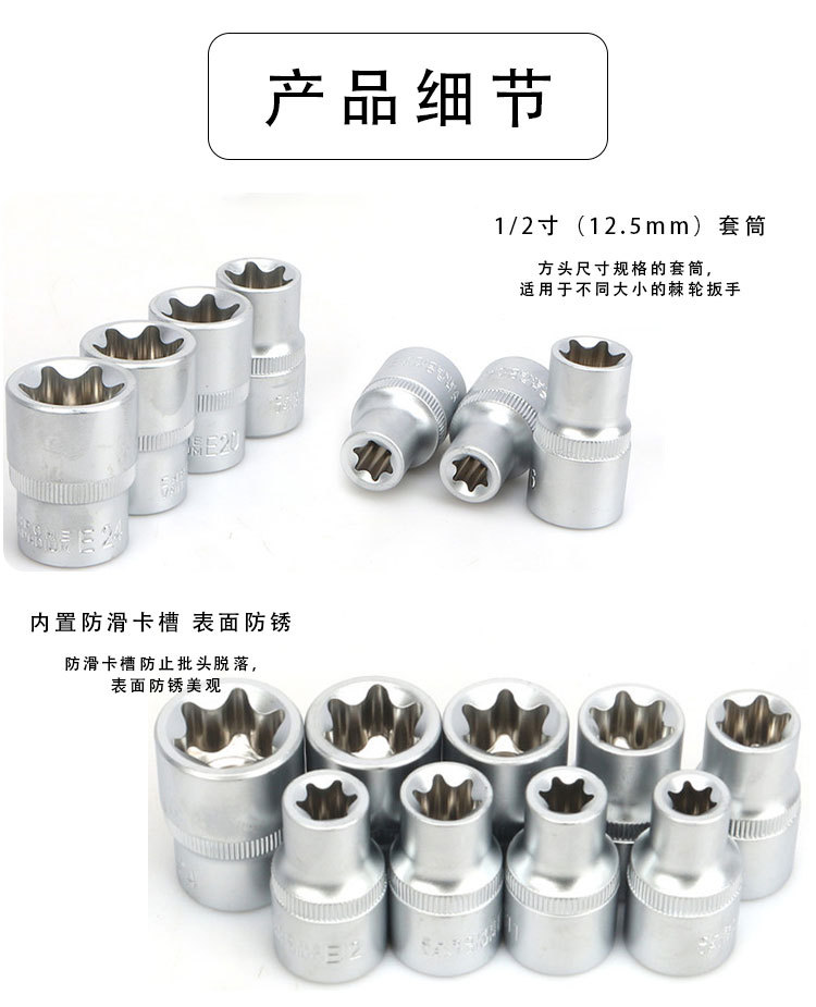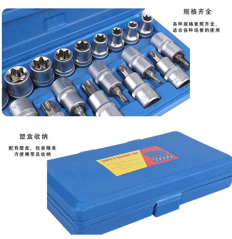 Juego de llaves de vaso tipo E, juego de llaves de vaso hexagonales tipo E de 6 piezas, combinación de llaves de vaso hexagonales de 19 piezas, herramientas especiales para reparación de automóviles.