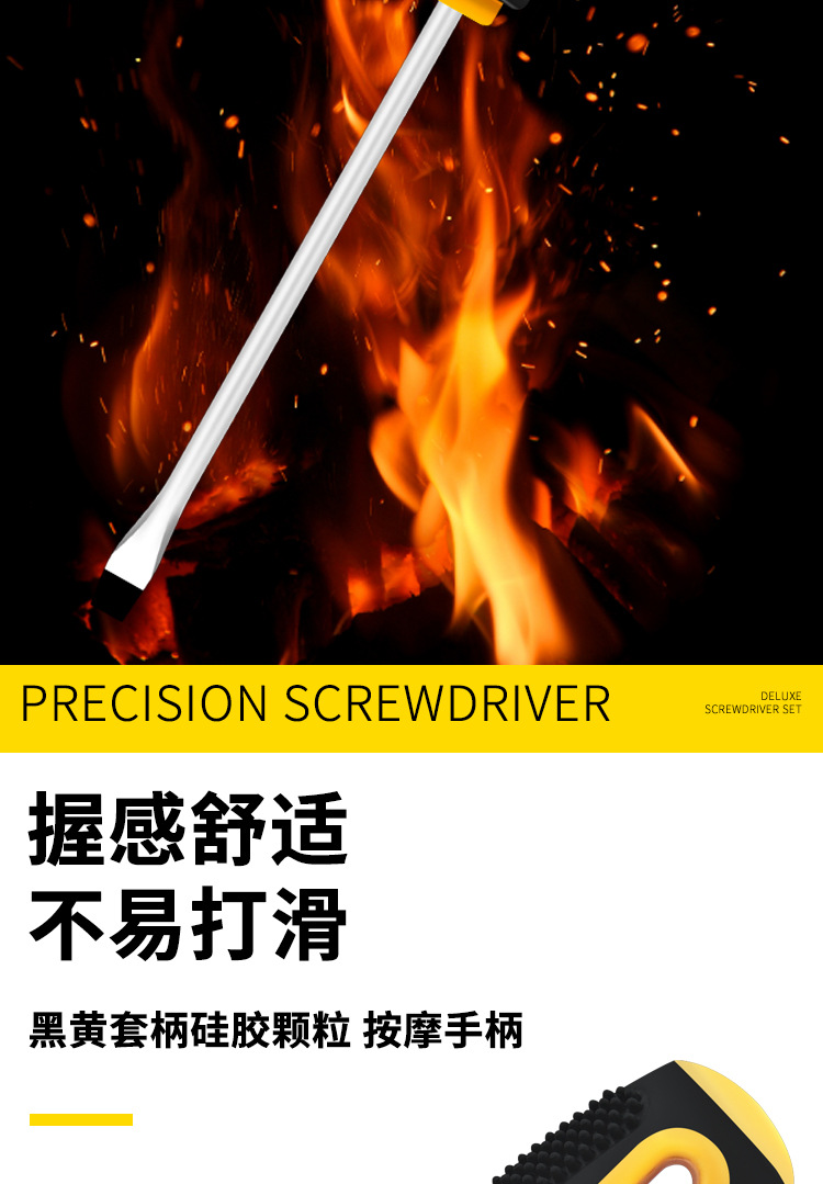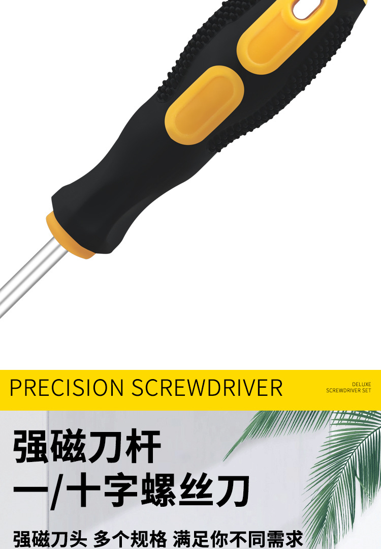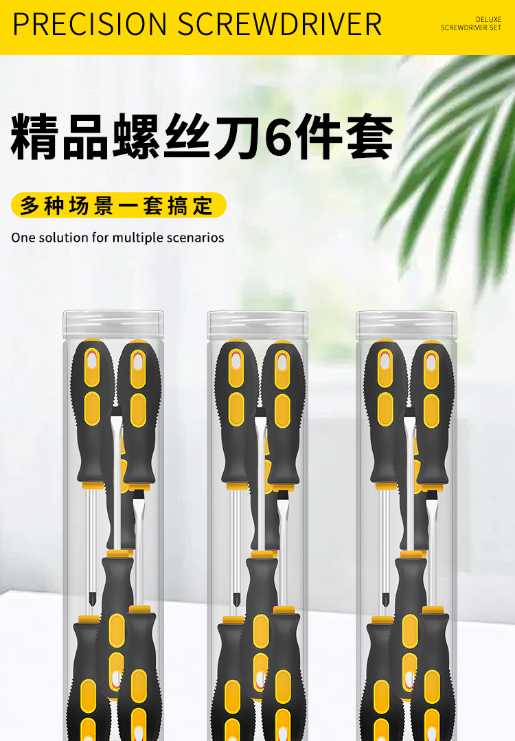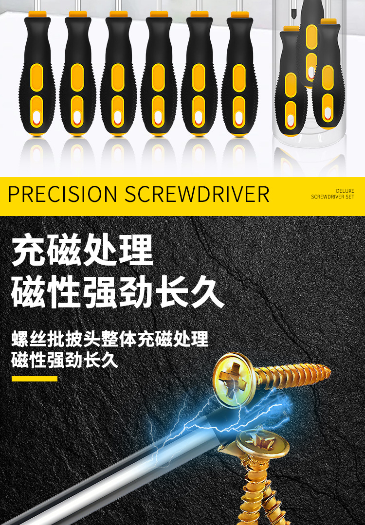 Transfronterizos para destornilladores de alta calidad, seis piezas, una cruz, negro y amarillo de dos colores, mango de masaje antideslizante magnético, pegamento