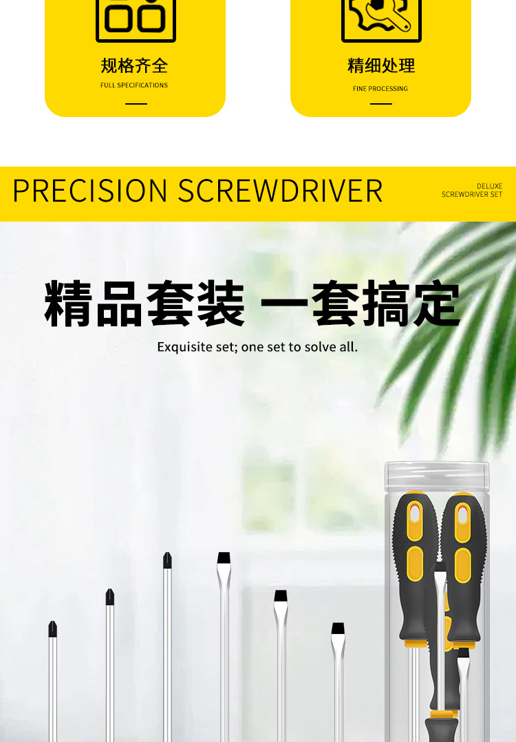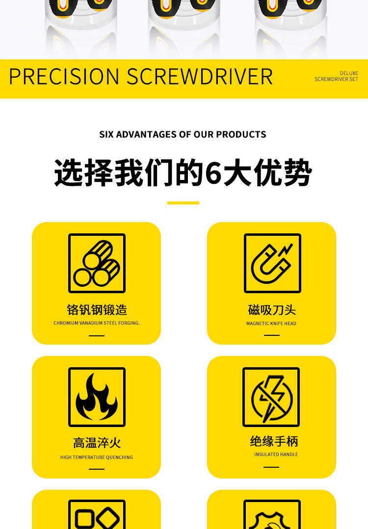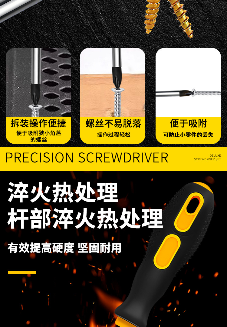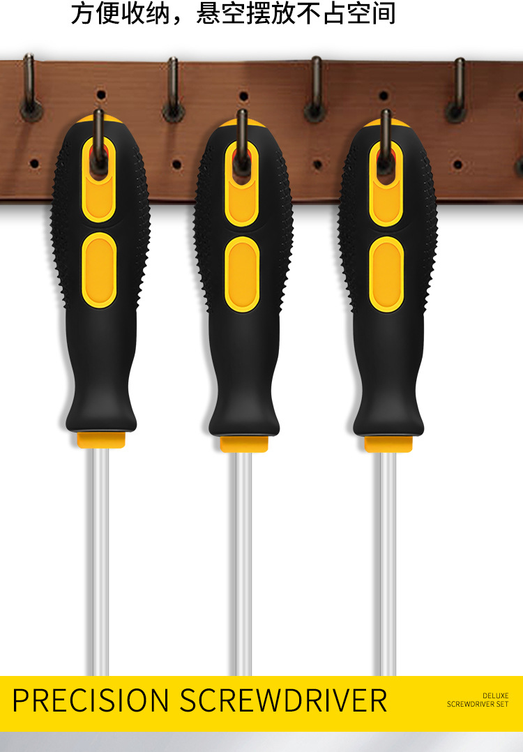 Transfronterizos para destornilladores de alta calidad, seis piezas, una cruz, negro y amarillo de dos colores, mango de masaje antideslizante magnético, pegamento