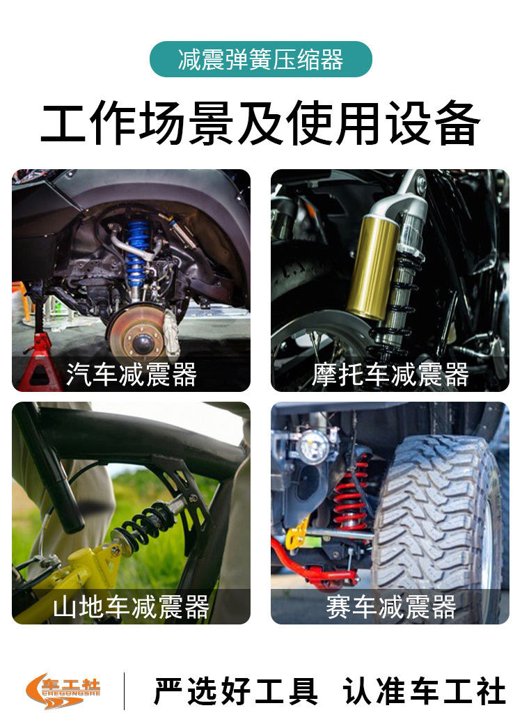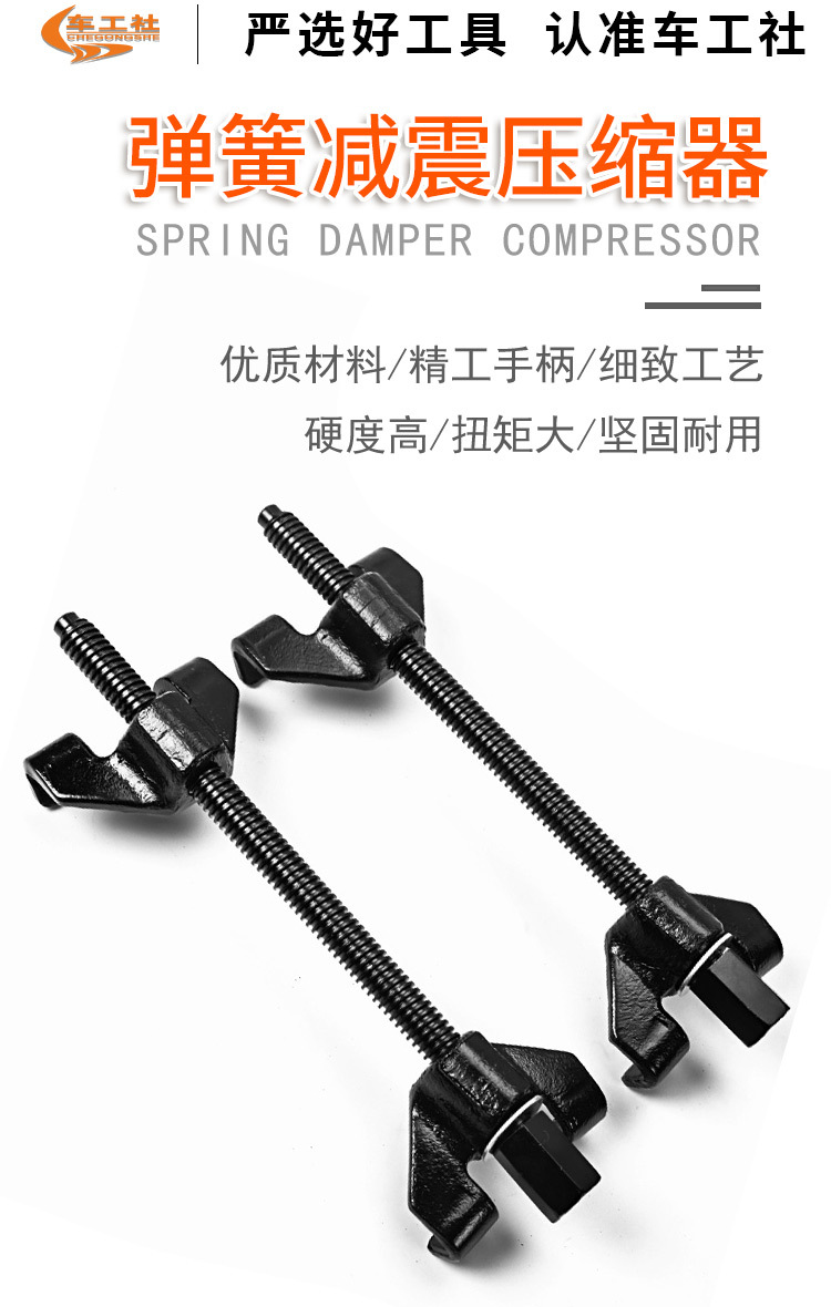 Herramienta de desmontaje de amortiguadores, desmontador de resortes de amortiguadores especializado, compresor manual de resortes, reparación automotriz, desmontaje de resortes helicoidales.