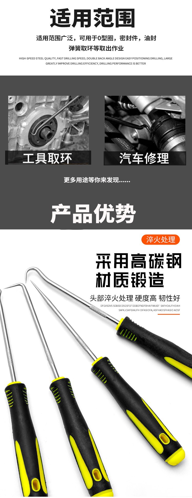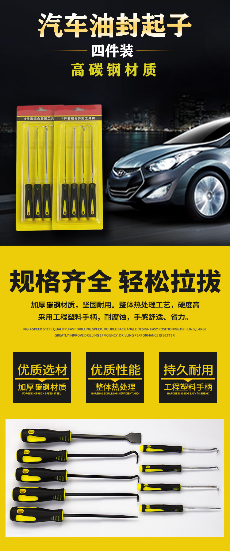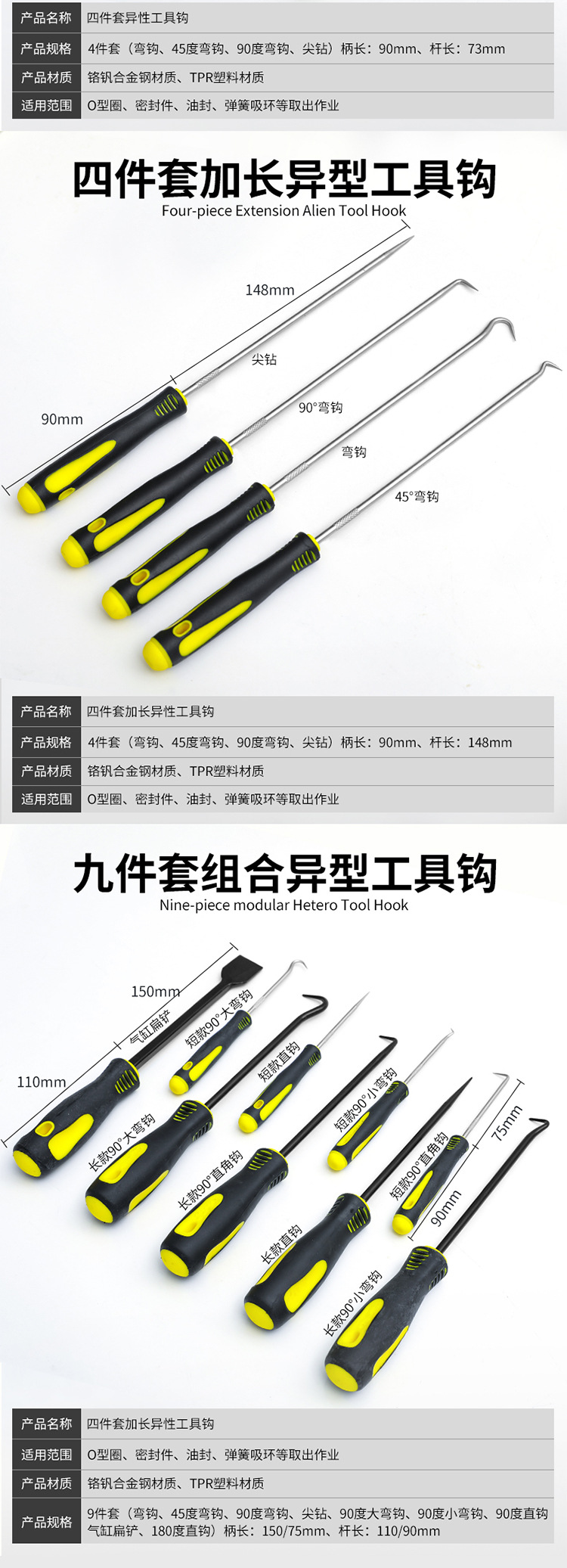 Gancho para sellos de aceite, palanca de desmontaje, extractor de juntas, removedor de anillos de sellado para automóviles, herramienta para extraer tiras de sellado de electrodomésticos y puertas/ventanas.